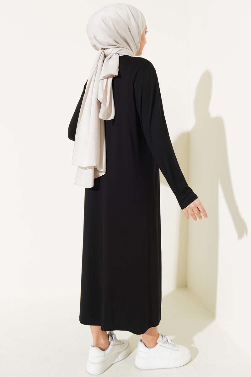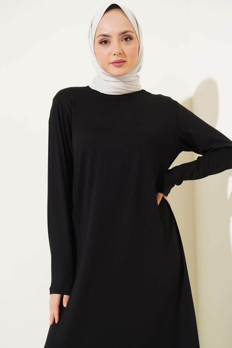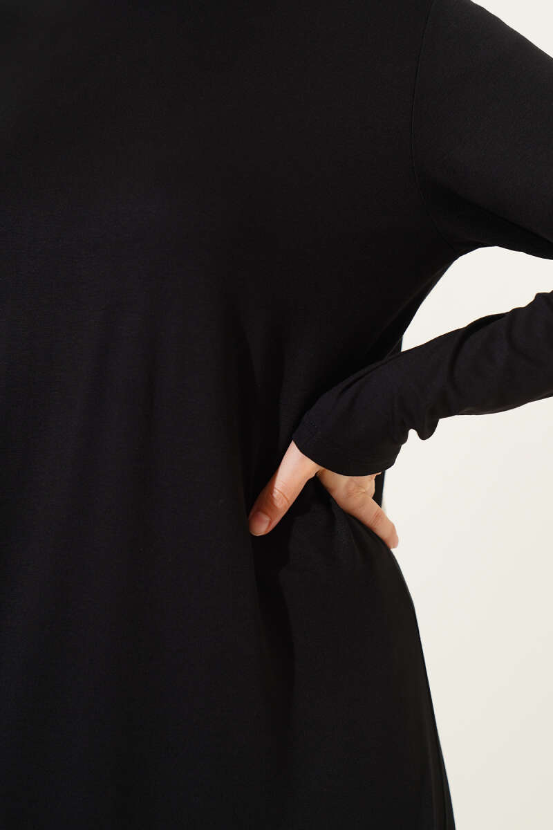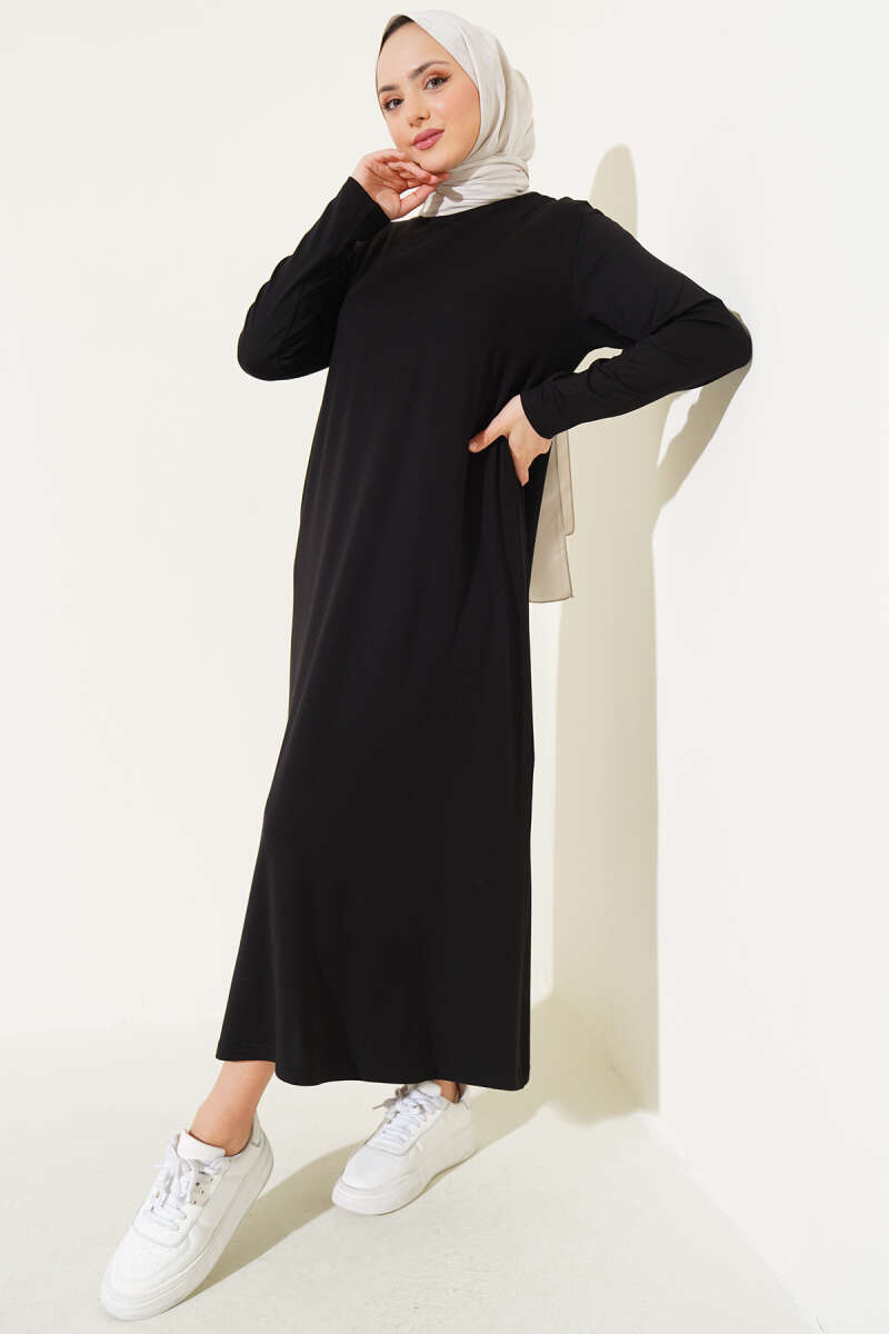 Bisiklet Yaka Penye Elbise Siyah