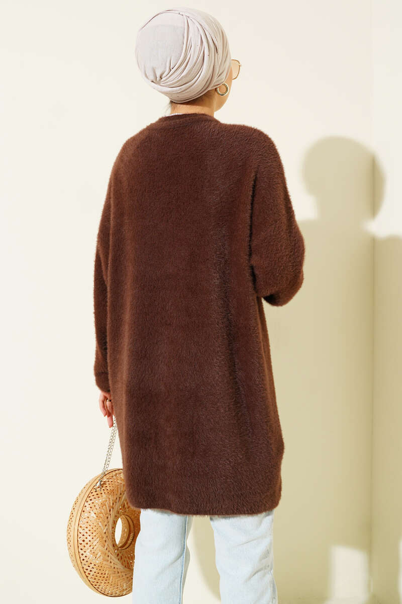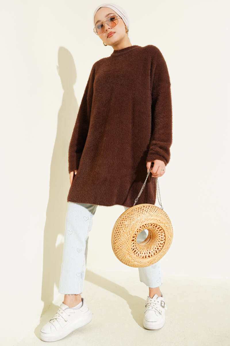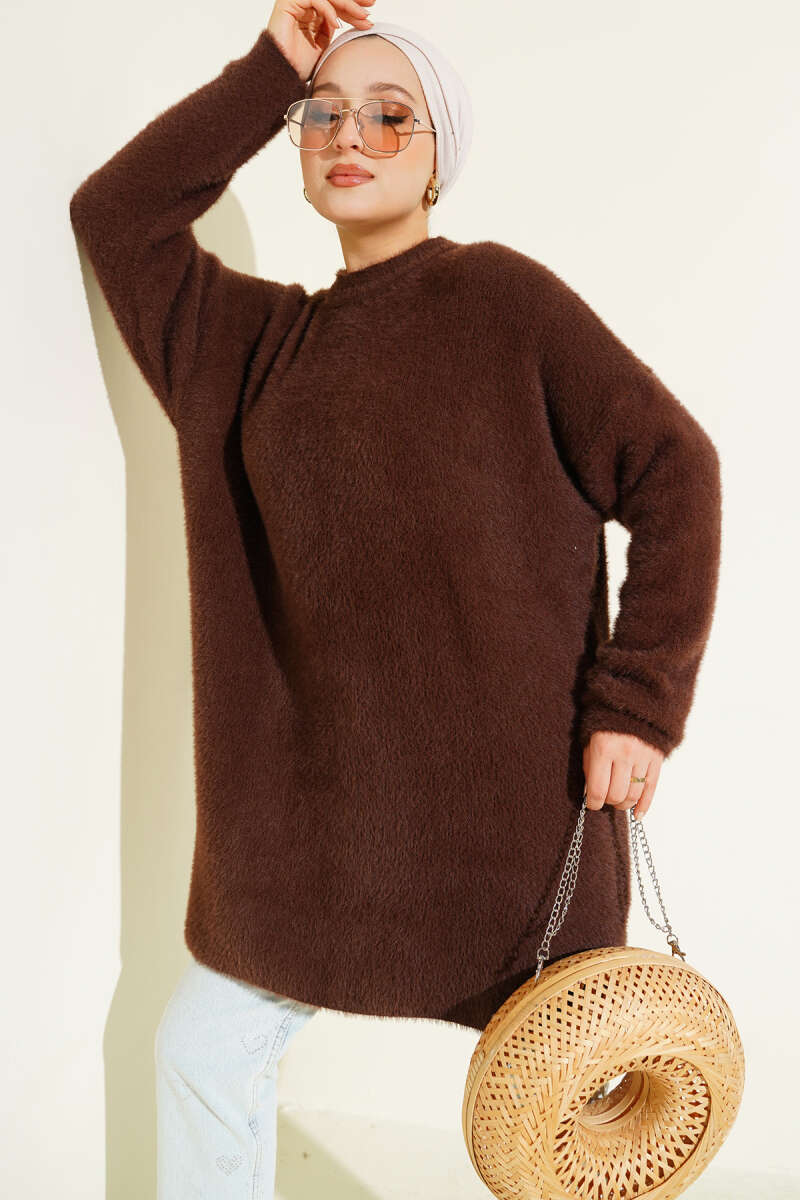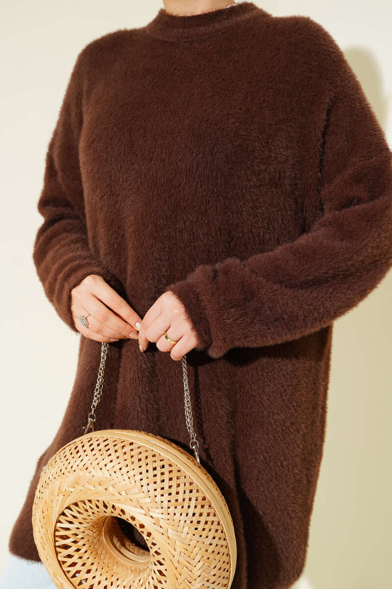 Bisiklet Yaka Sakal Detaylı Kazak Kahve