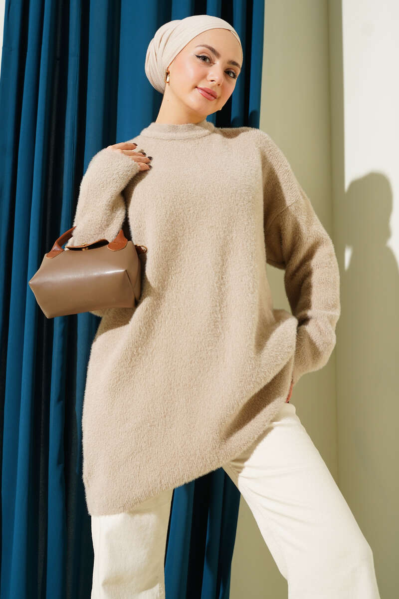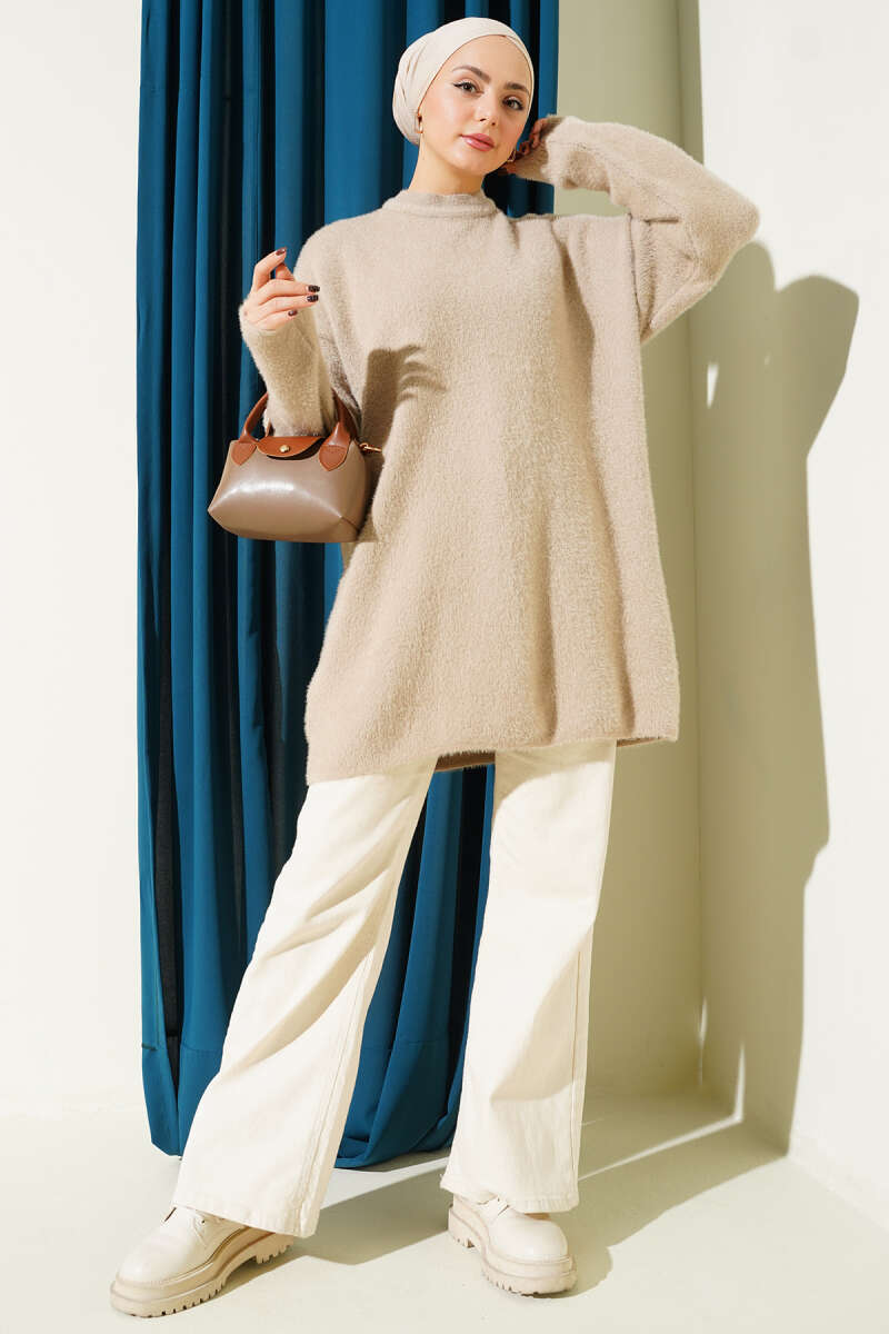 Bisiklet Yaka Sakal Detaylı Kazak Nefti