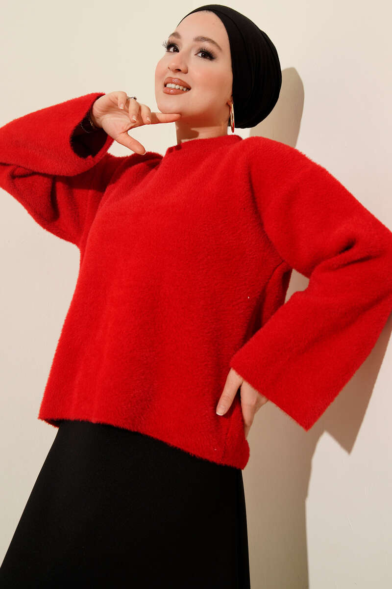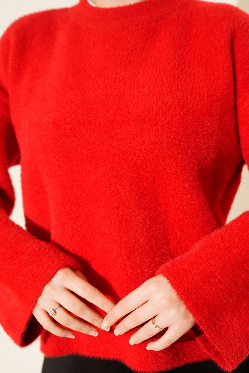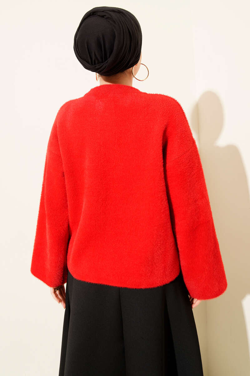 Bisiklet Yaka Sakal Detaylı Kazak Beyaz