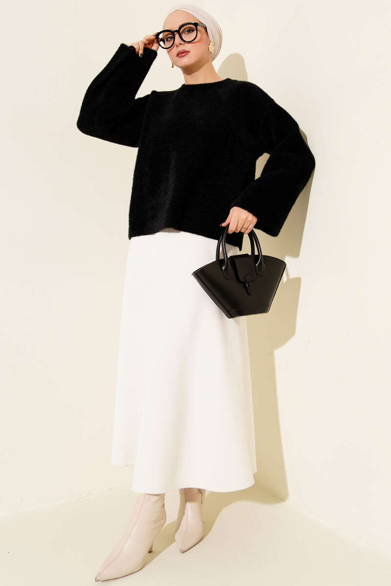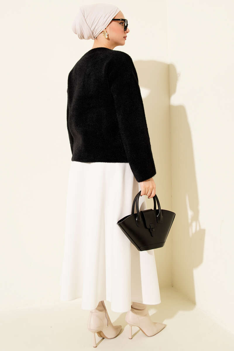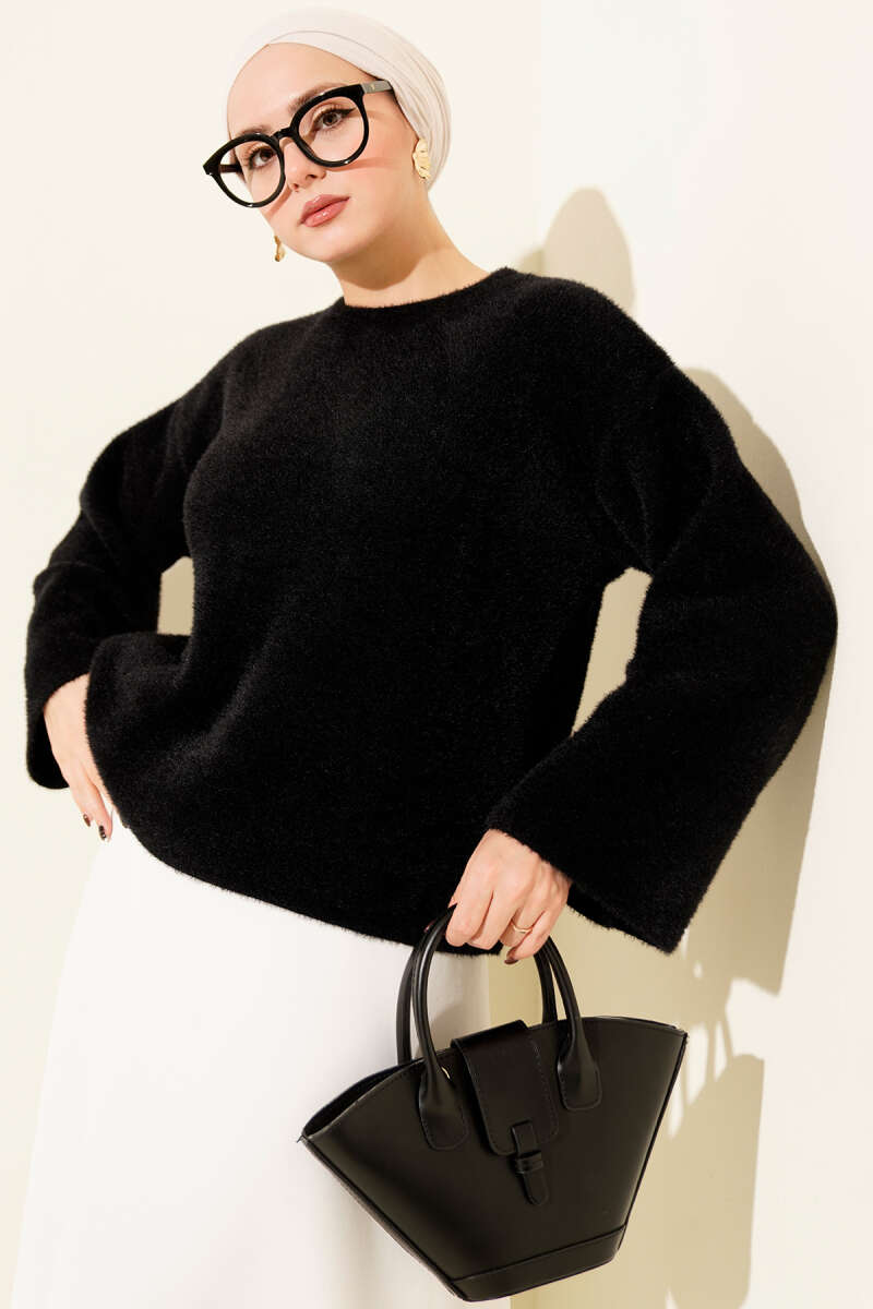 Bisiklet Yaka Sakal Detaylı Kazak Siyah