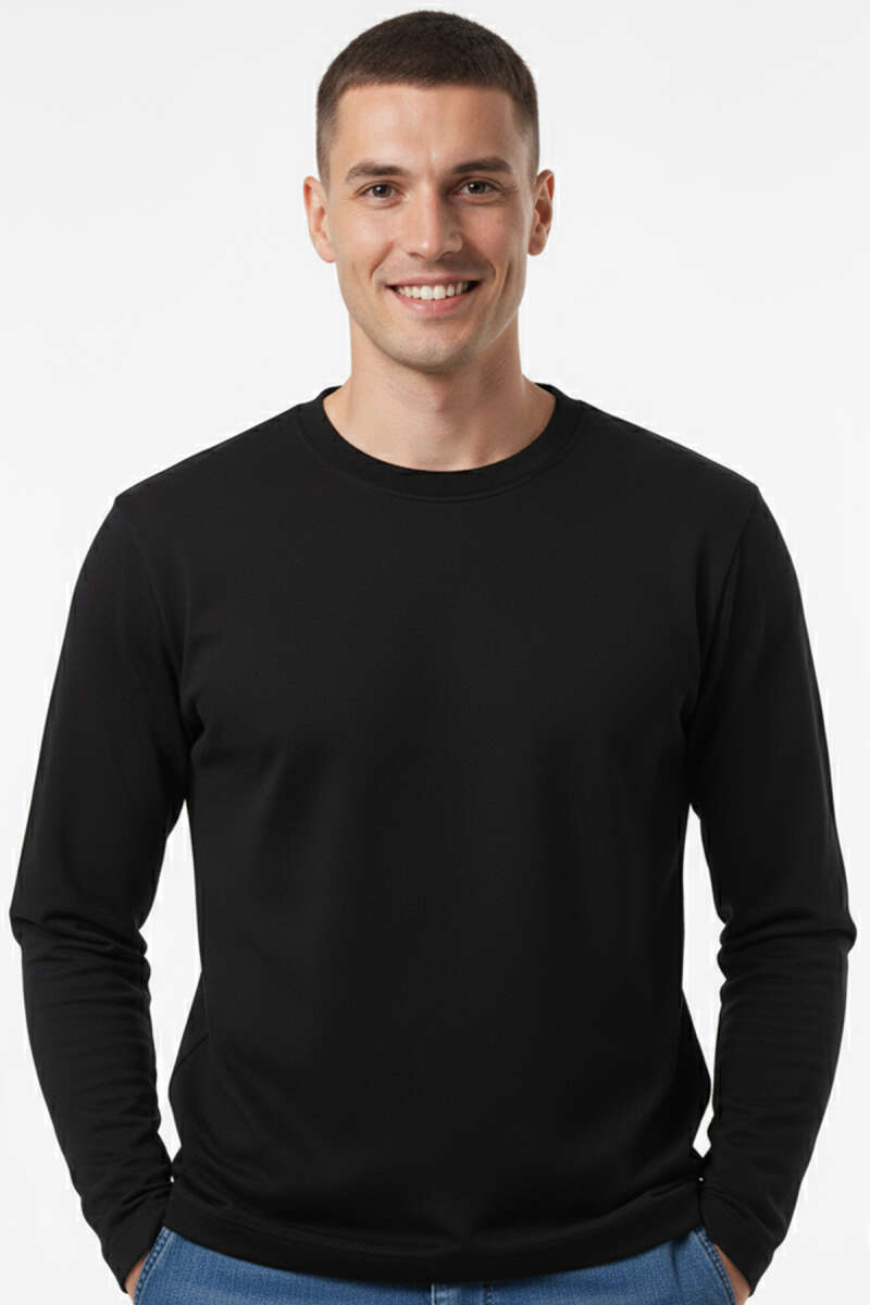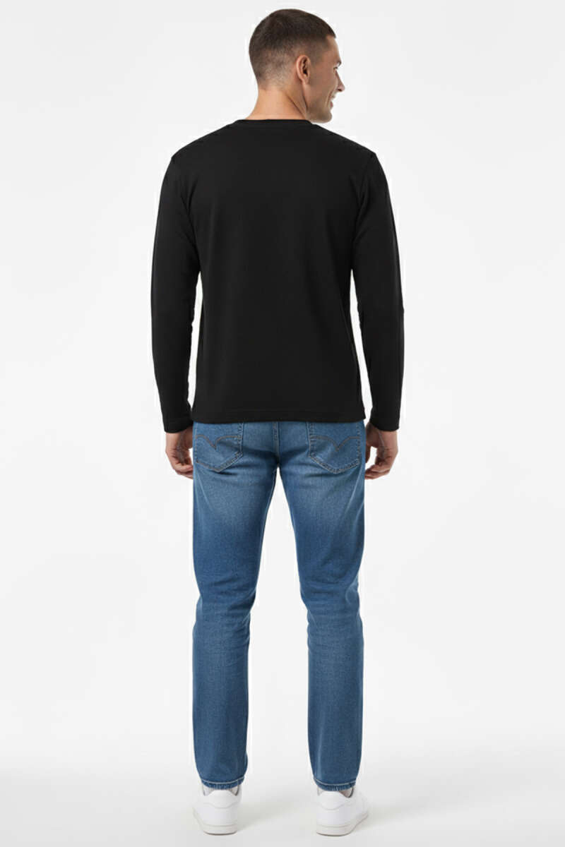 Üç İplik Bisiklet Yaka Erkek Sweatshirt Siyah
