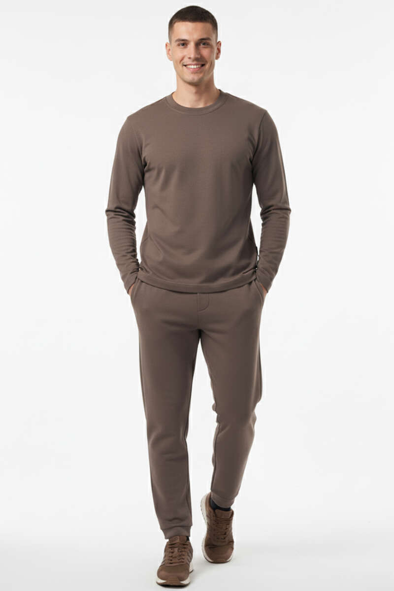 Üç İplik Bisiklet Yaka Erkek Sweatshirt Bej