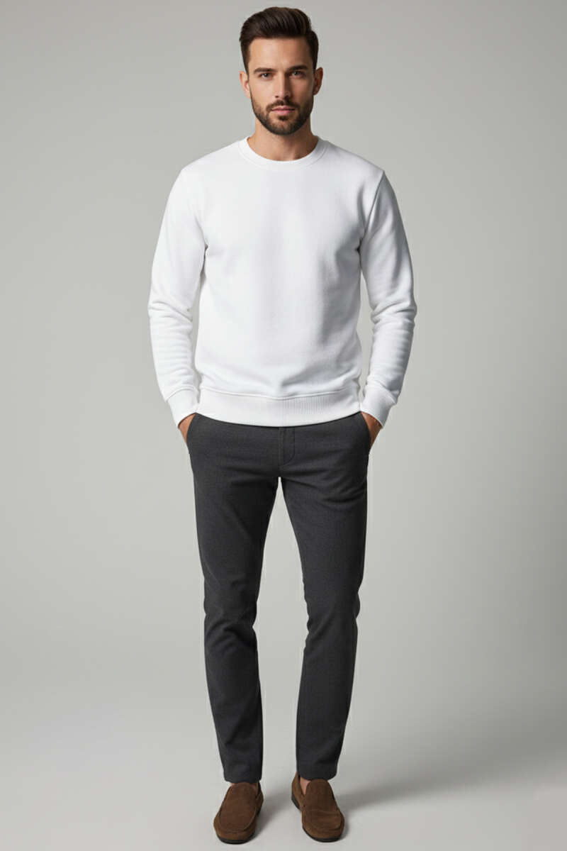 Bisiklet Yaka Selanik Erkek Sweatshirt Ekru