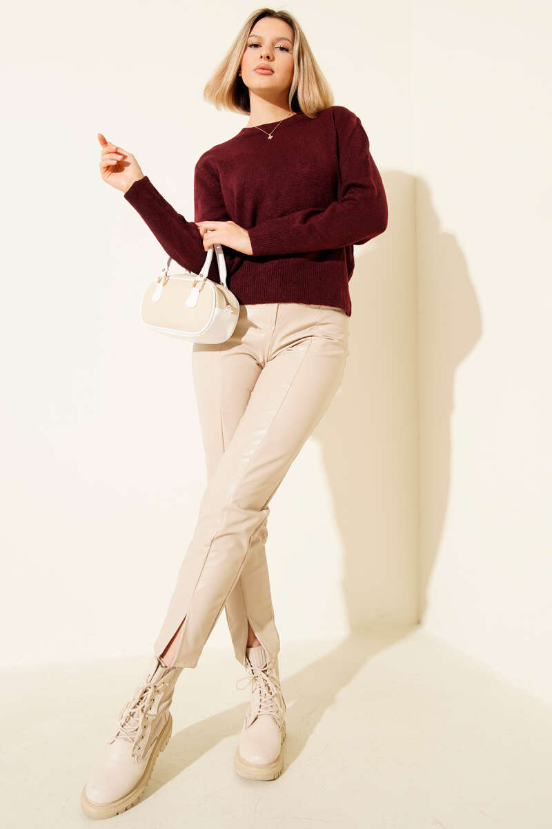 Kemer Detaylı Fermuarlı Kısa Deri Ceket Kahve