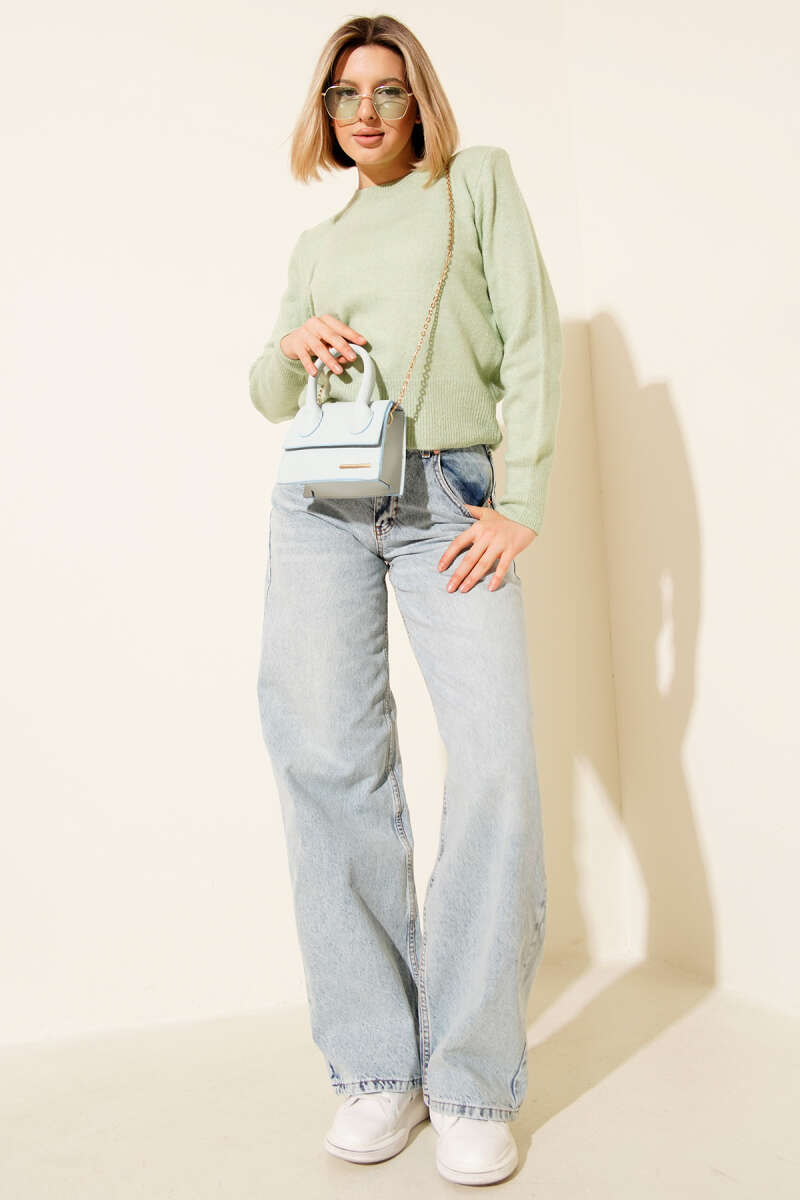 Bisiklet Yaka Triko Kazak Çağla Yeşili