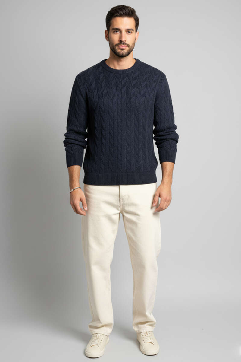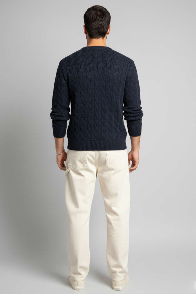 Yıldız Desen Triko Örme Erkek Kazak Kemik