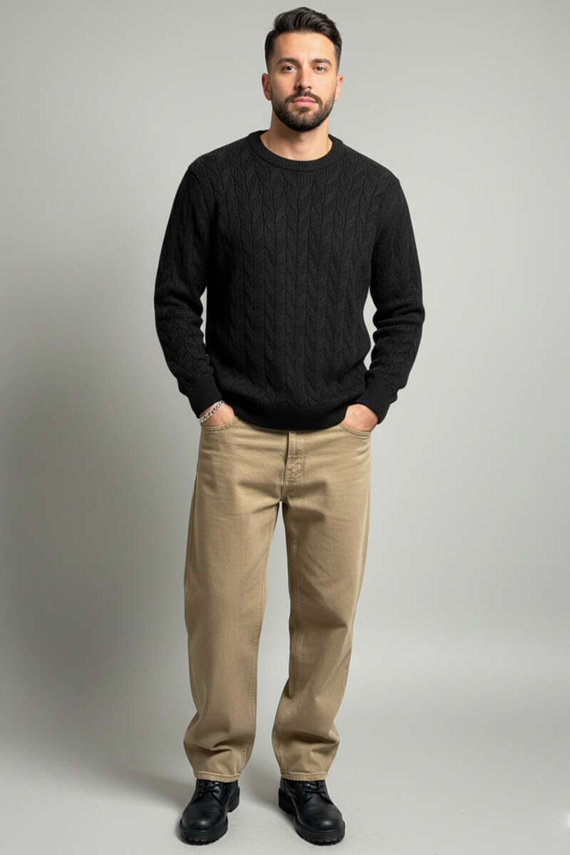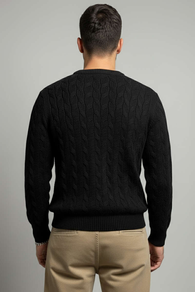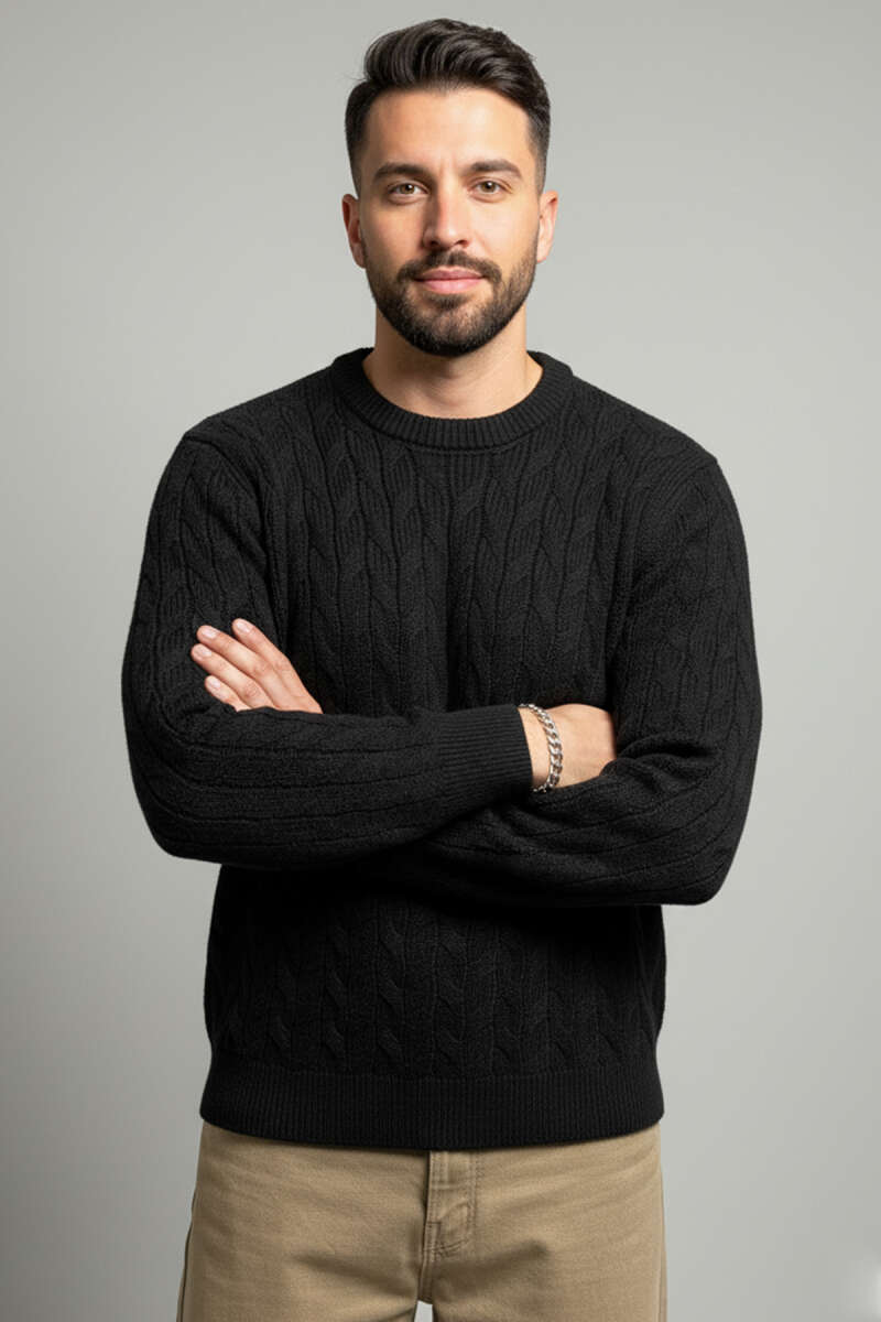 Yıldız Desen Triko Örme Erkek Kazak Siyah