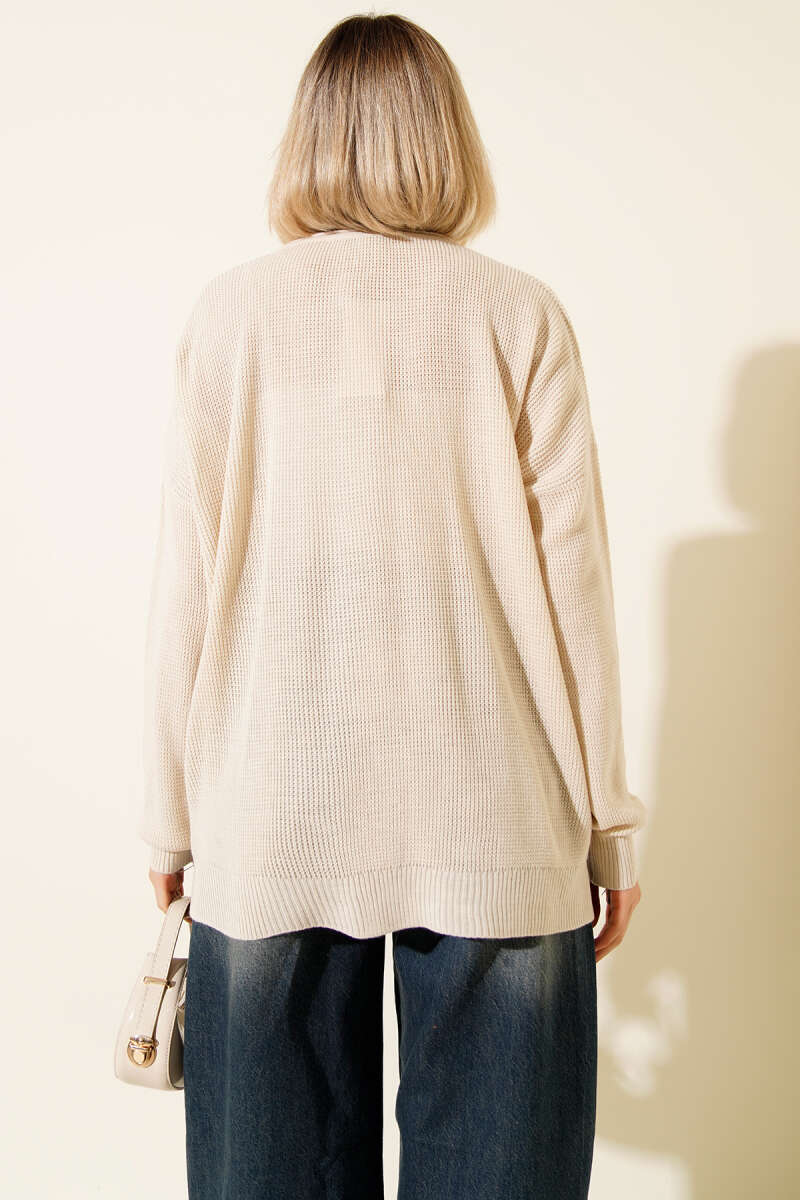 Leopar Desenli Şardonlu Triko Hırka Latte