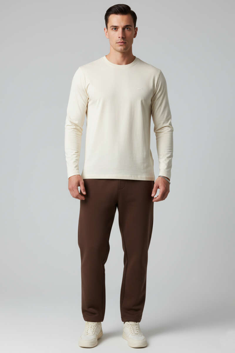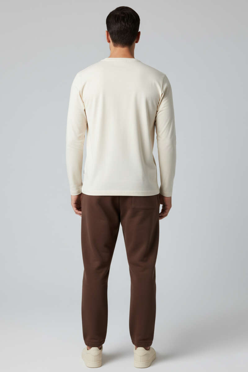 Bisiklet Yaka Uzun Kollu Sweatshirt Krem
