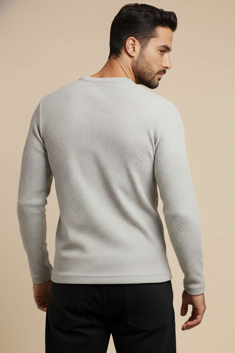 Üç İplik Bisiklet Yaka Erkek Sweatshirt Gri