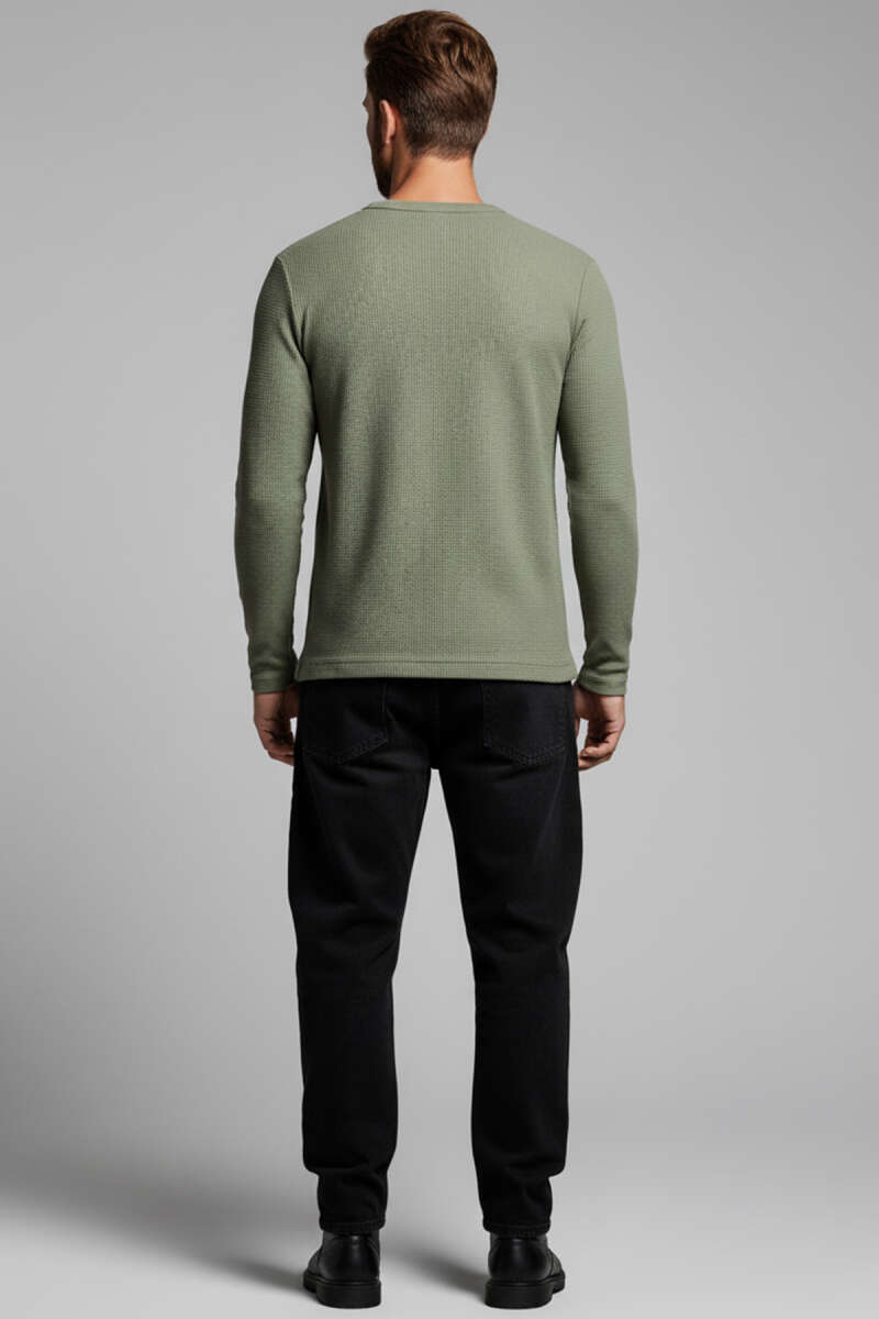 Bisiklet Yaka Waffle Erkek Sweatshirt Lacivert