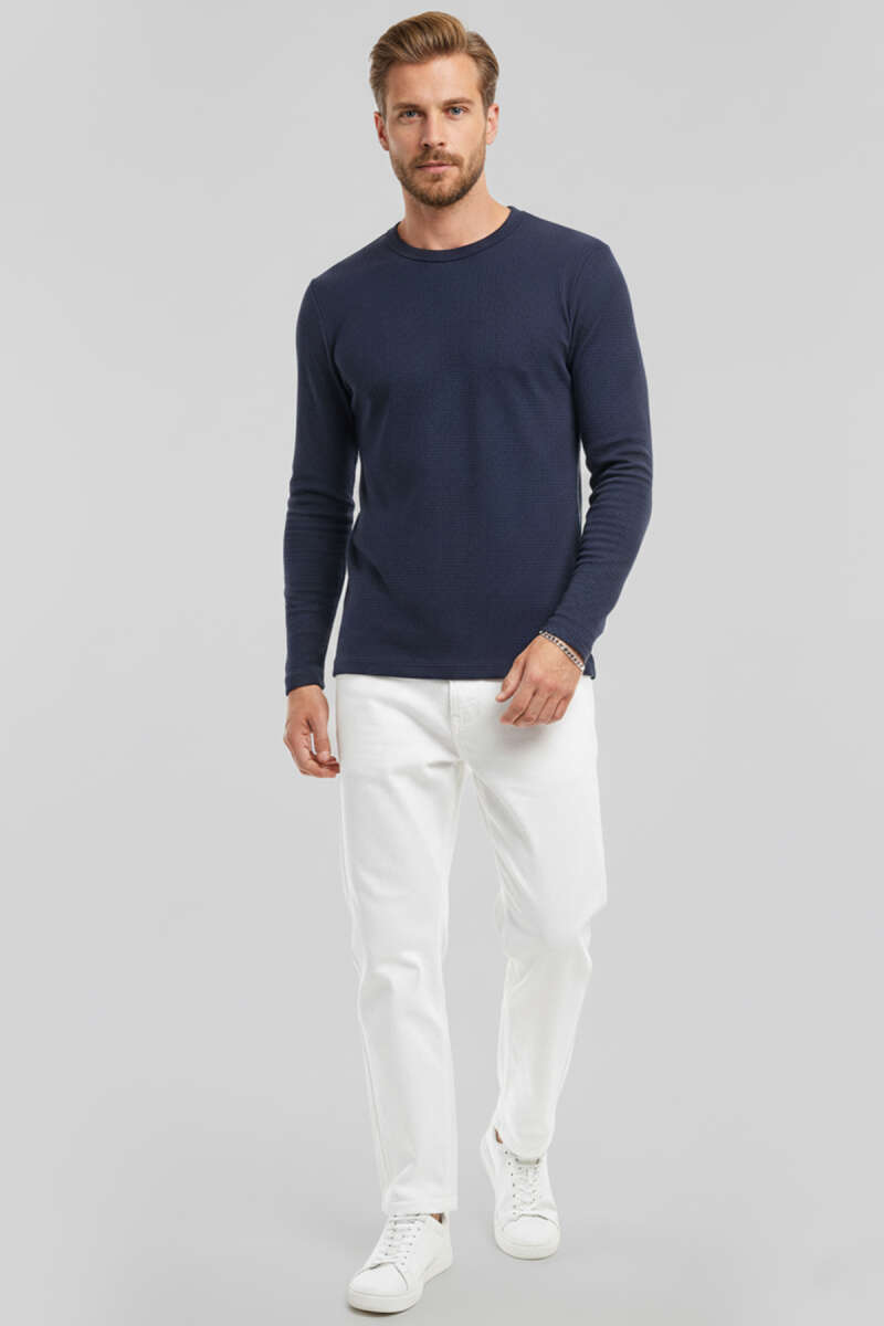 Üç İplik Bisiklet Yaka Erkek Sweatshirt Saks