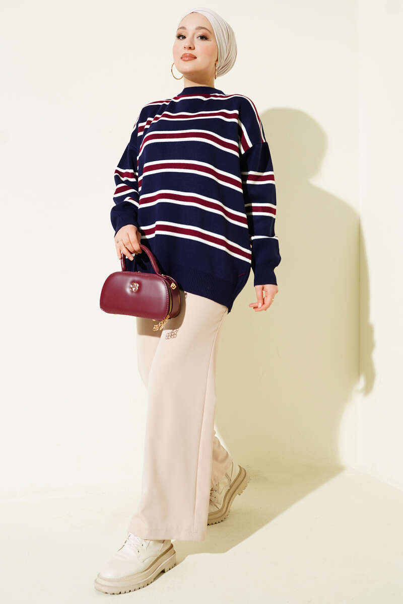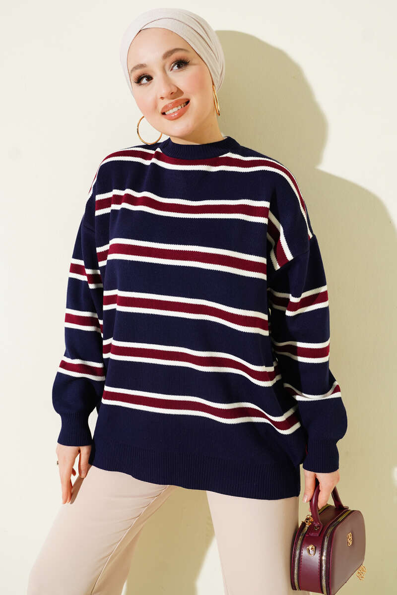Popit Kabartmalı Triko Tunik Bordo