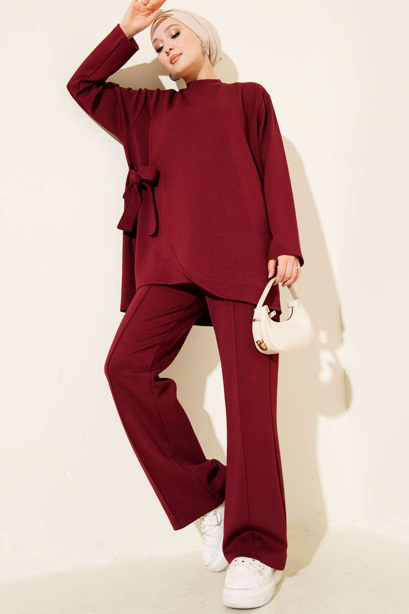 Karışık Desenli Bürümcük Kimono İkili Takım Bordo