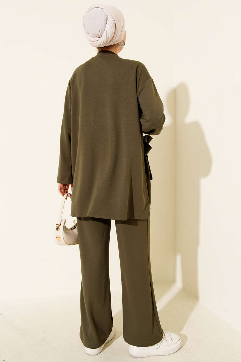 Çıtçıt Detaylı Çizgili İkili Takım Kahve