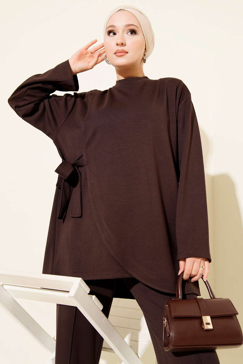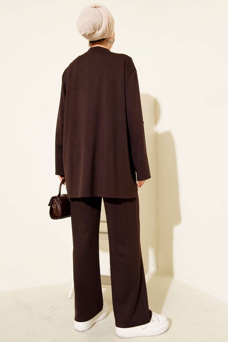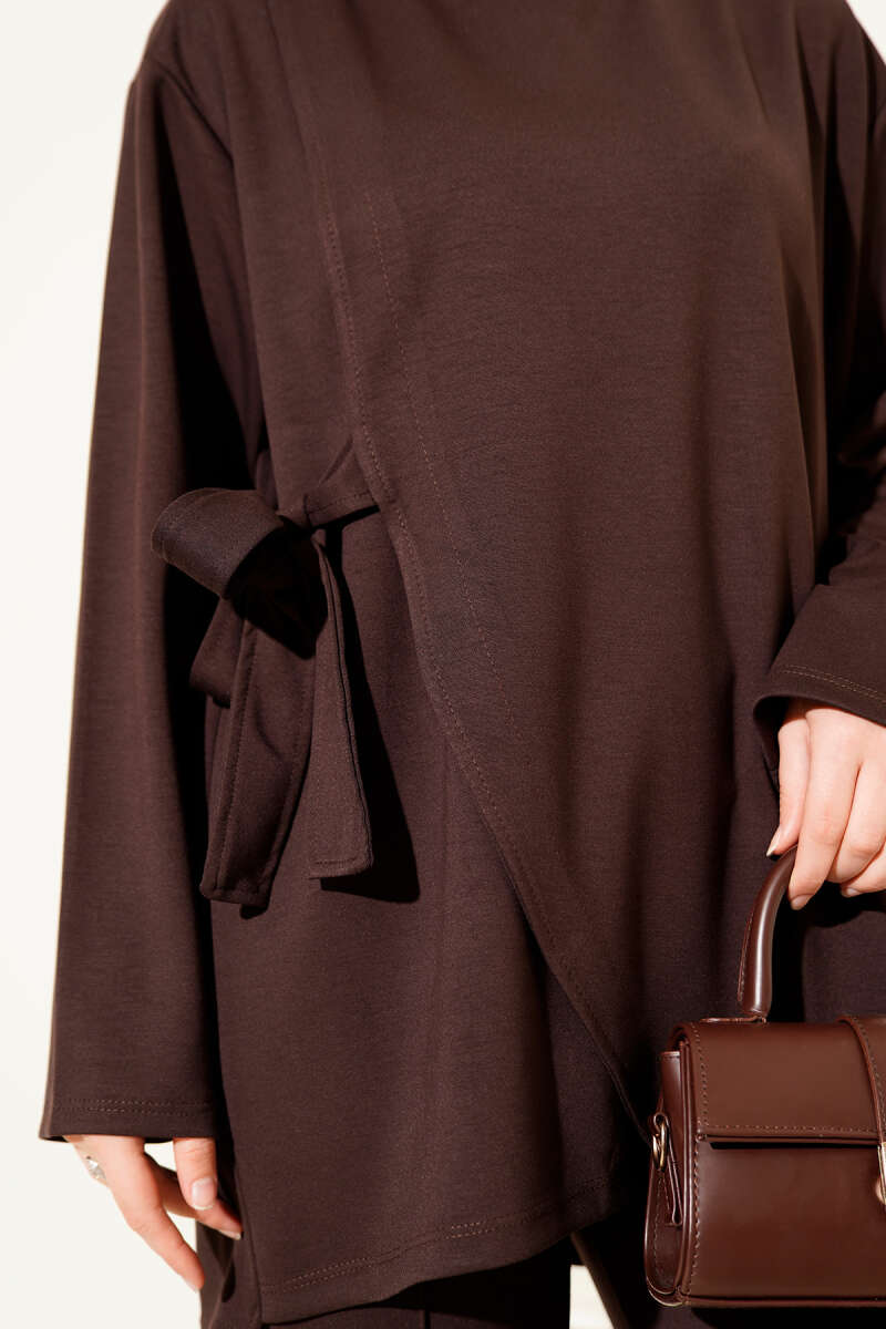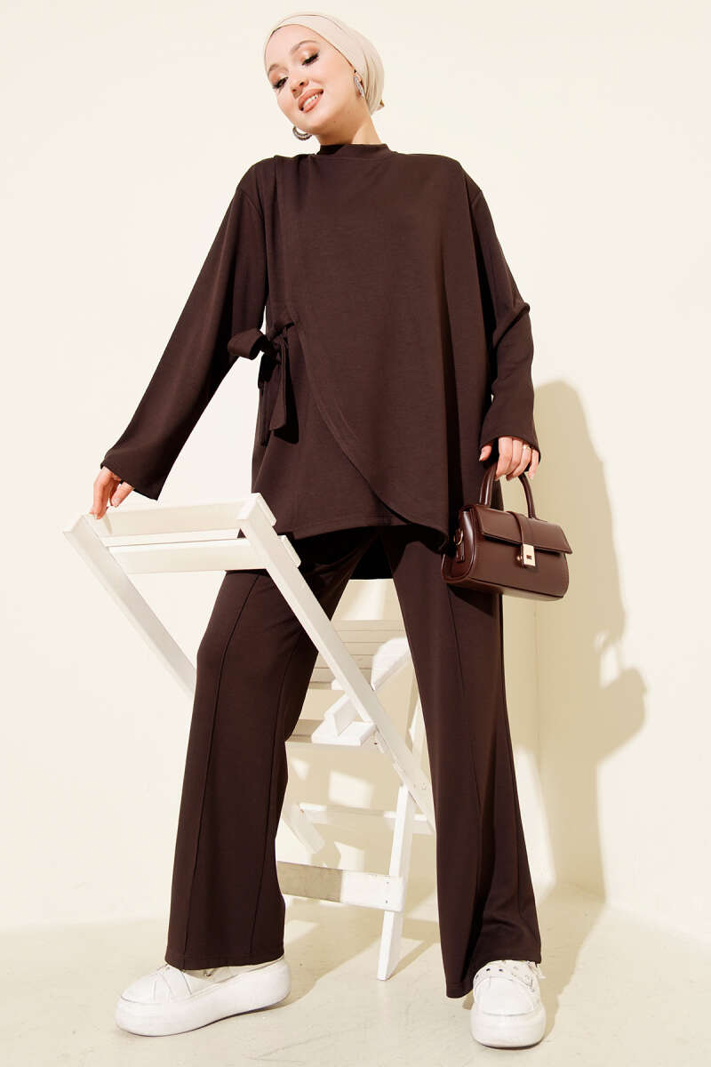 Yan Bağlamalı Kadife Fitilli İkili Takım Kahve