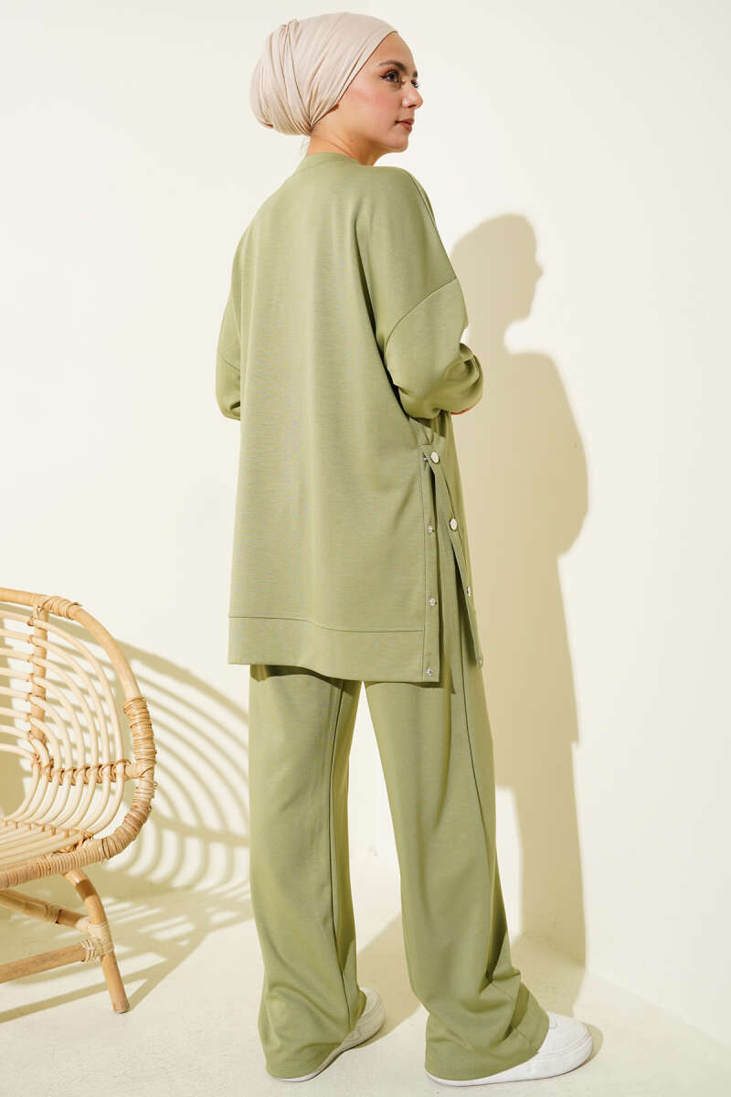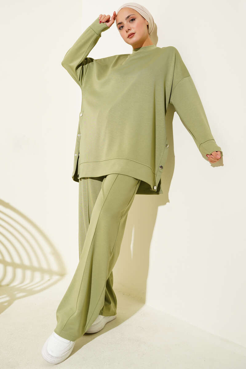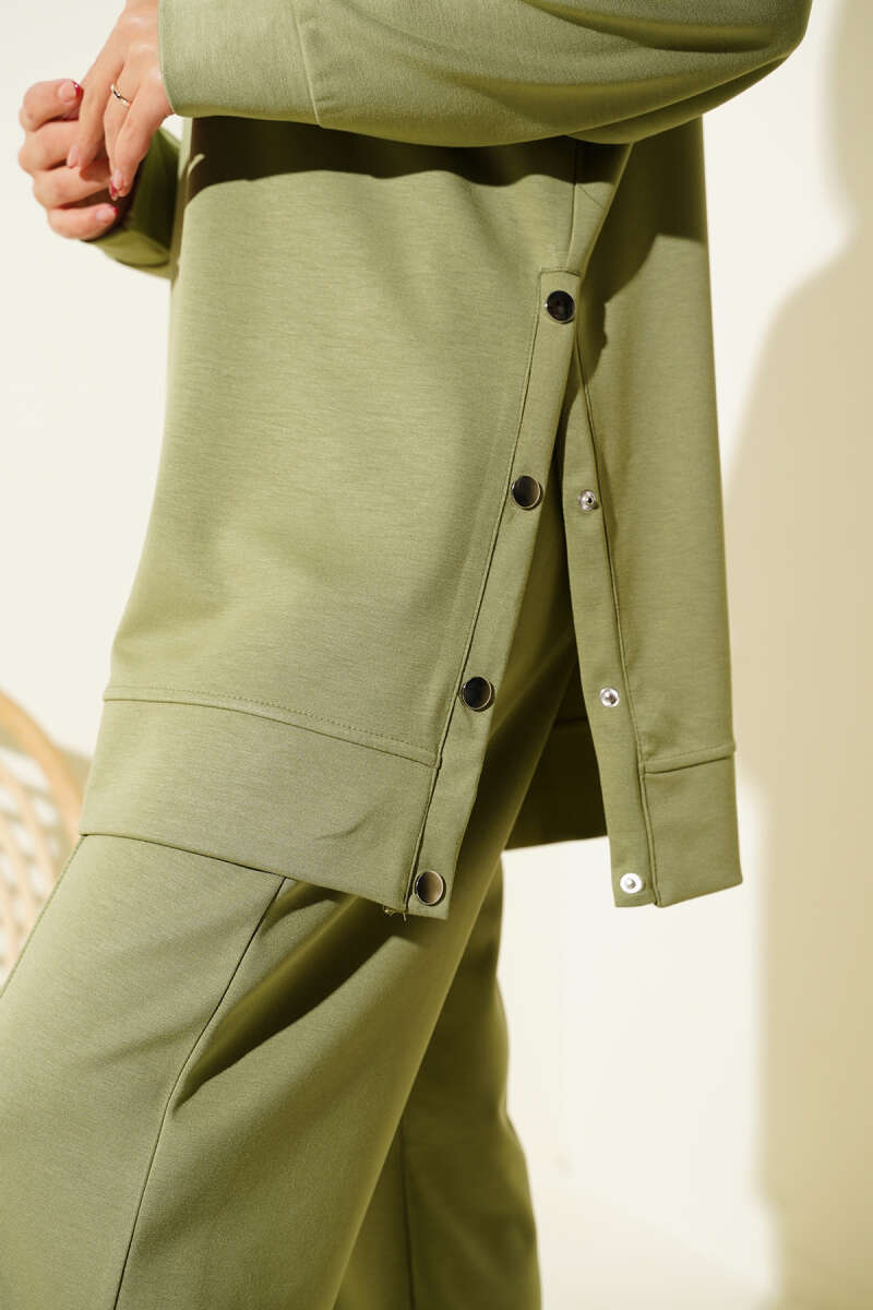 Önü Pileli Kemerli Scuba İkili Takım Haki