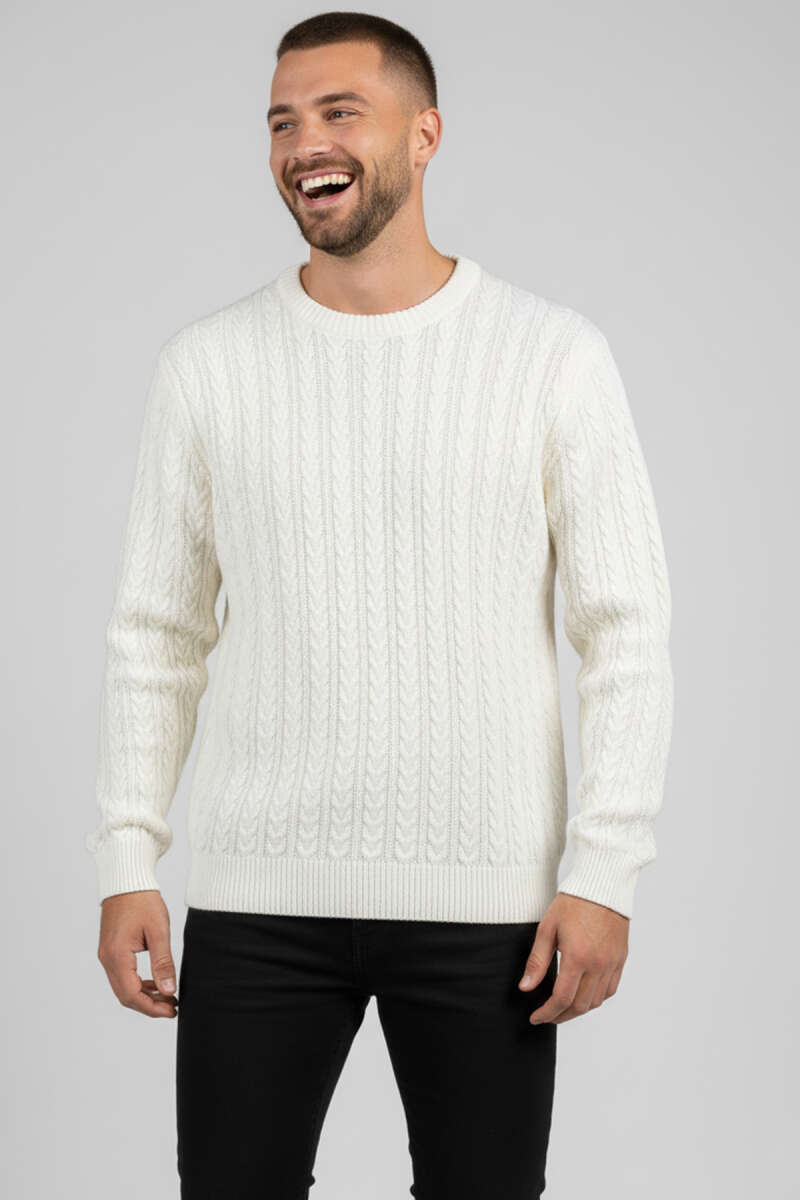 Saç Örgü Detaylı Fermuarlı Triko Kazak Ekru