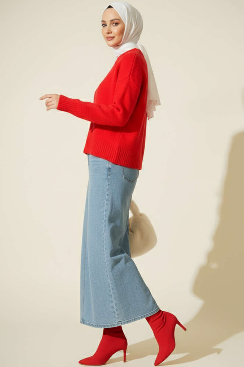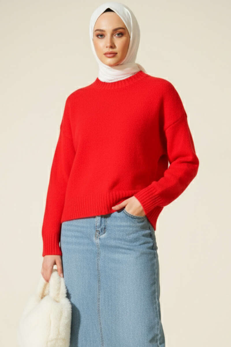 Bisiklet Yaka Yumoş Triko Kazak Bordo