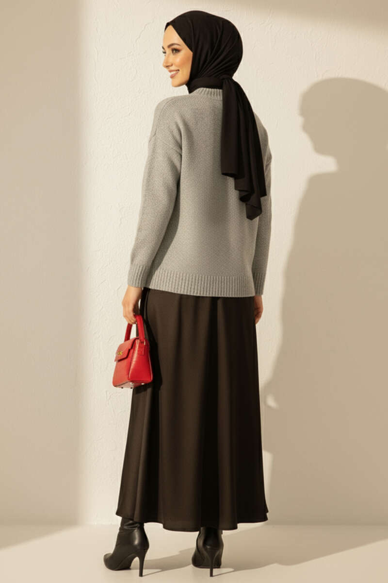 Yanları İp Bağlamalı Saten Elbise Kahve