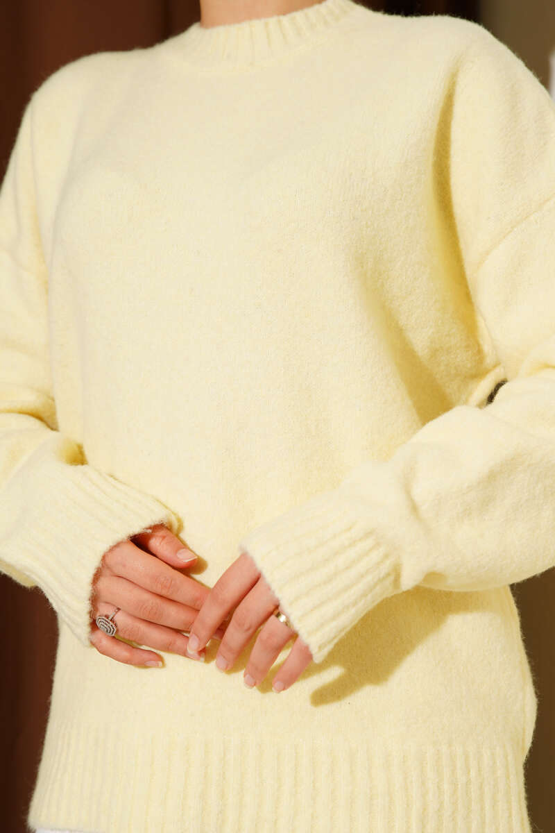 Bisiklet Yaka Yumoş Triko Kazak Latte