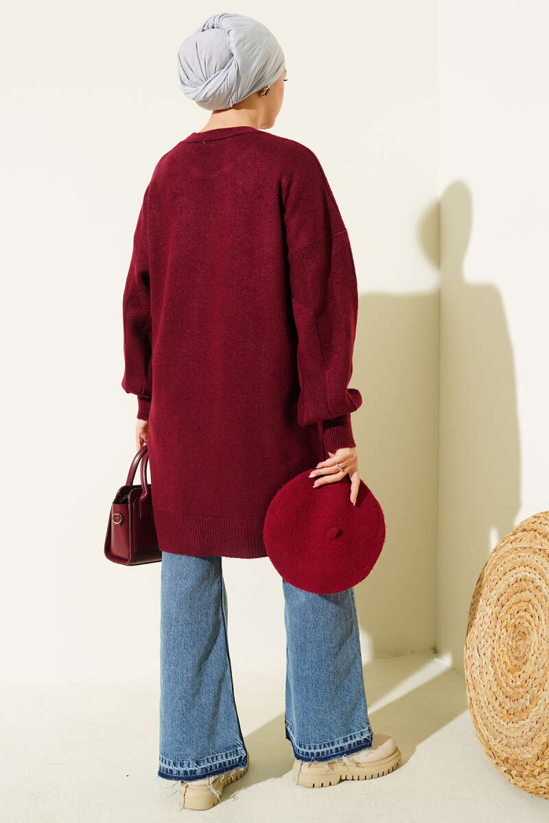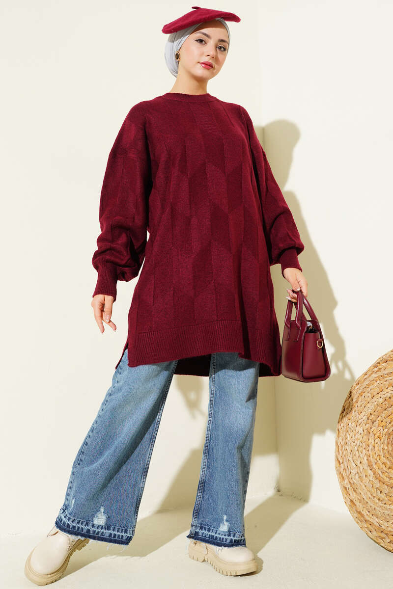 Baklava Kabartma Yumoş Triko Tunik Bordo