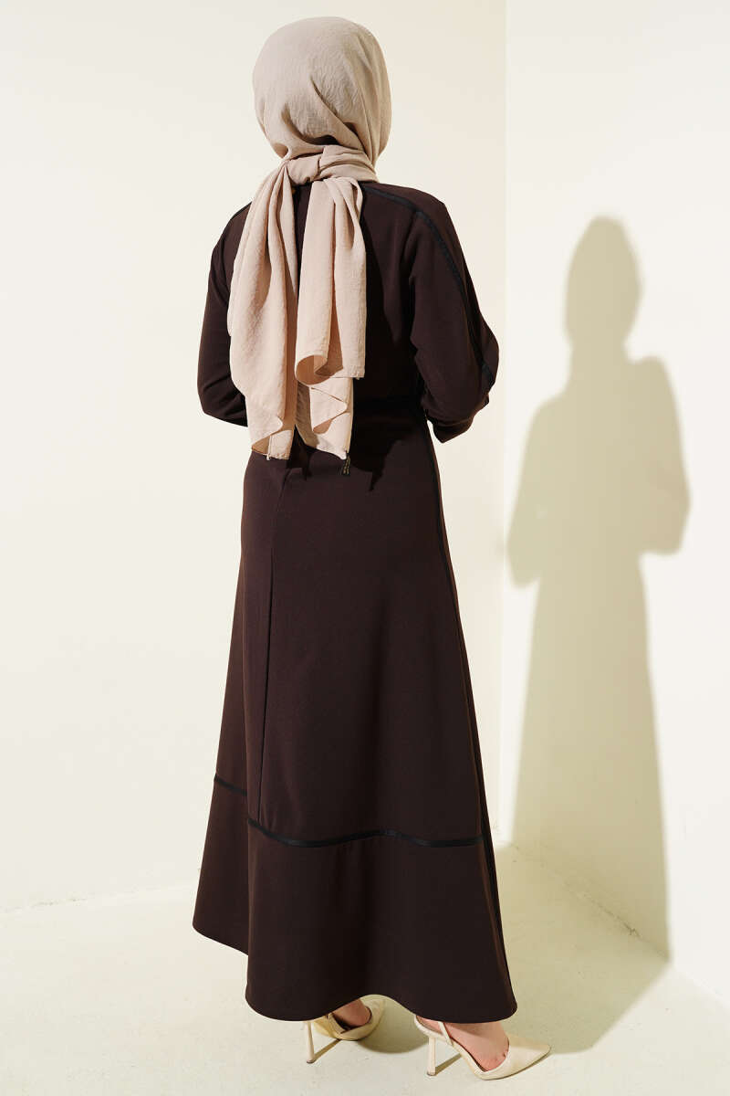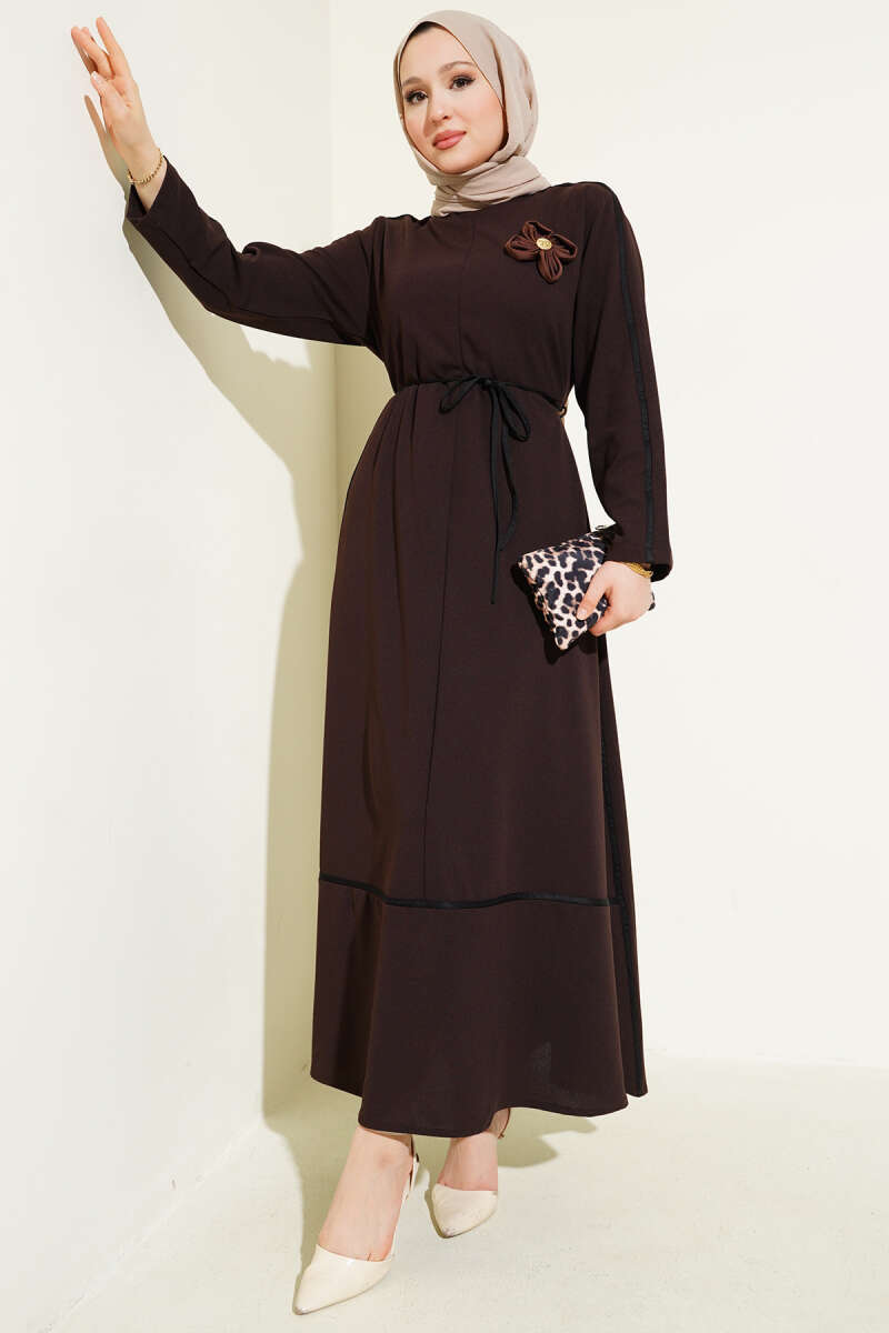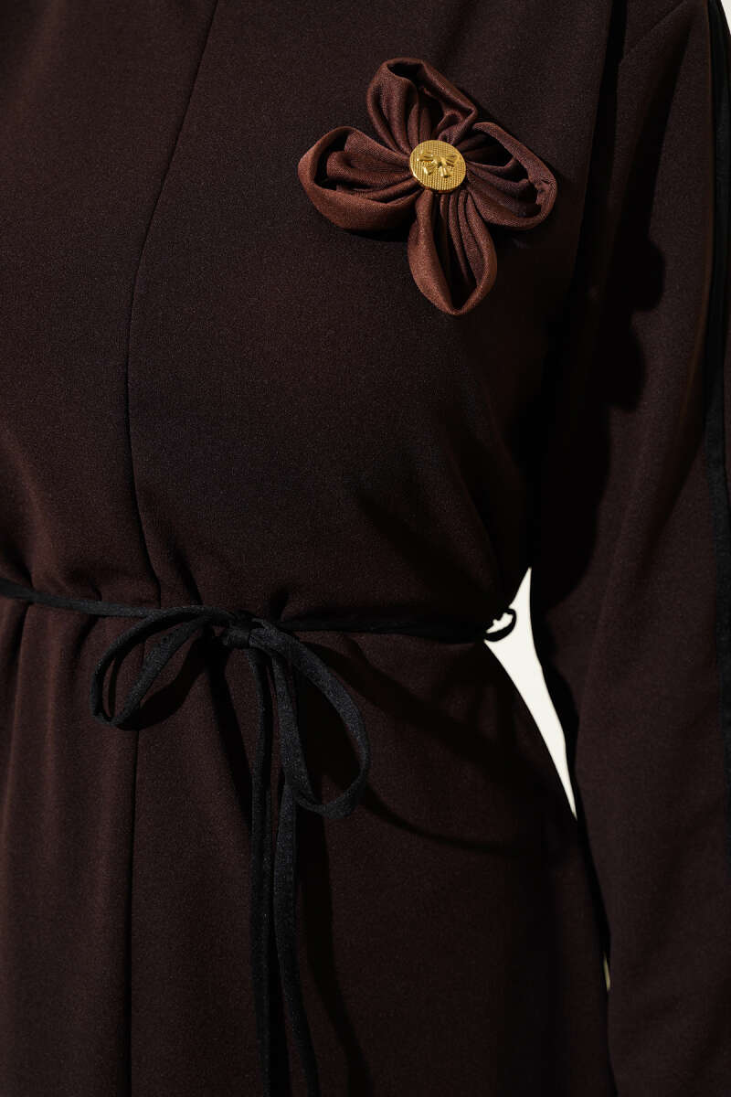 Omuz Pelerin Detaylı Abiye Elbise Kahve