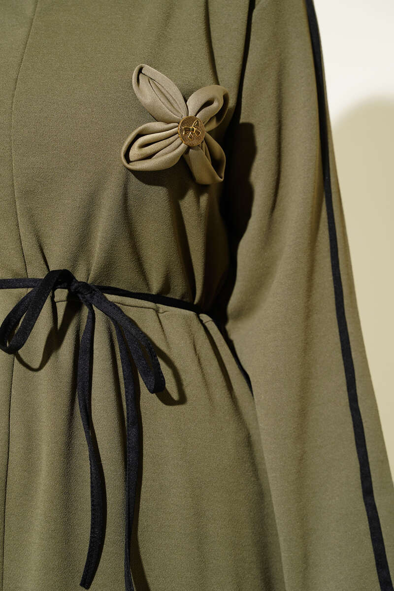Boydan Düğmeli Kemerli Tensel Elbise Taş