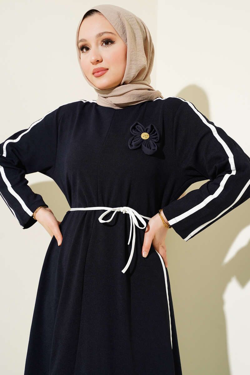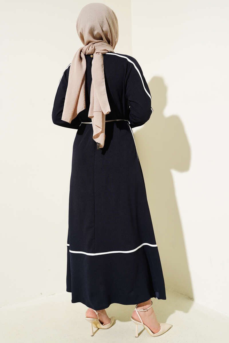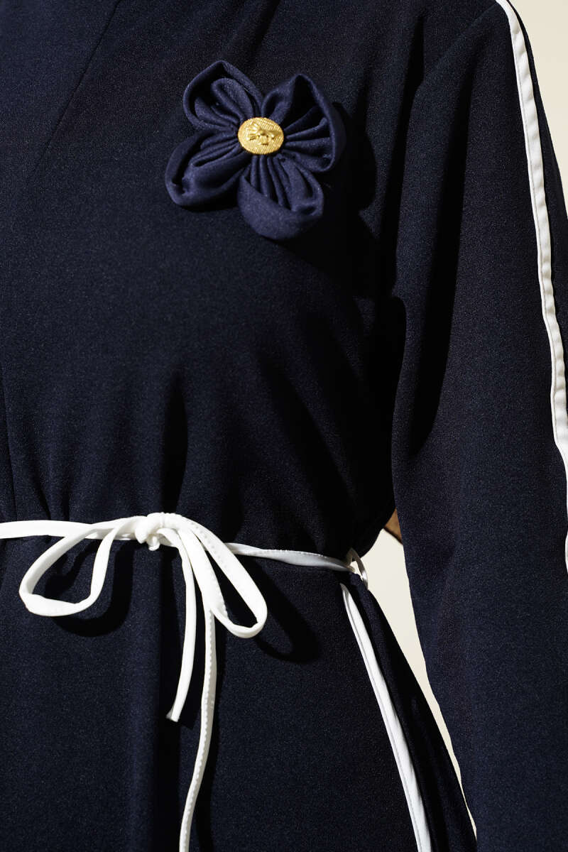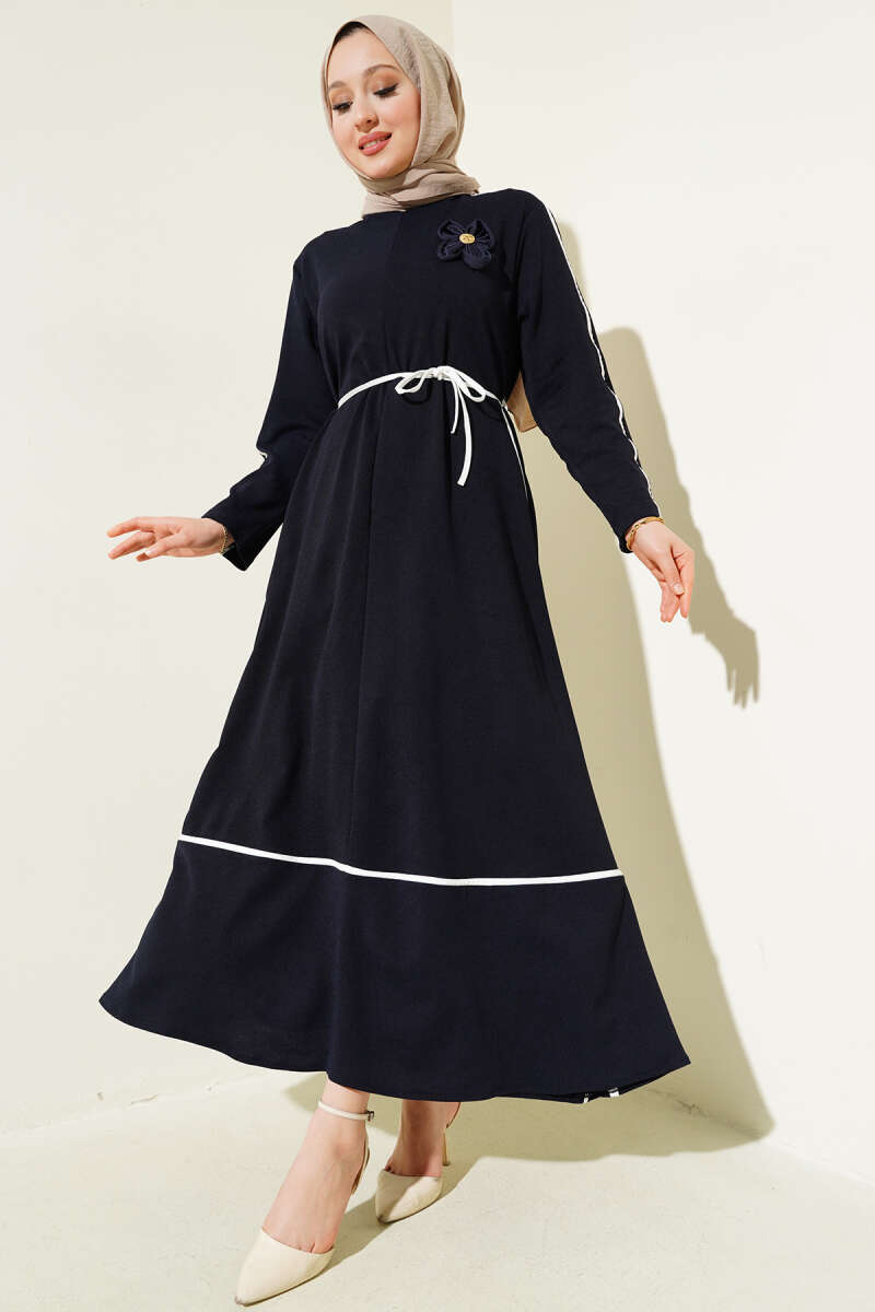 Brit Düğmeli İp Bağcıklı Elbise Lacivert