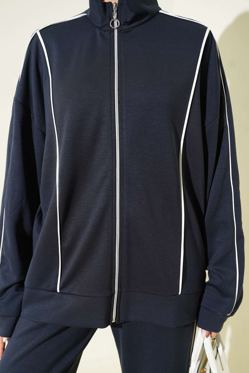 Biye Detaylı Fermuarlı Loyşa İkili Takım Kayrak Grisi