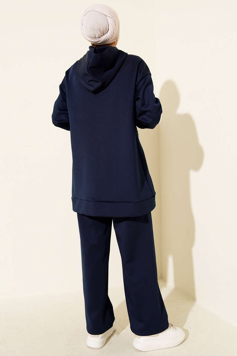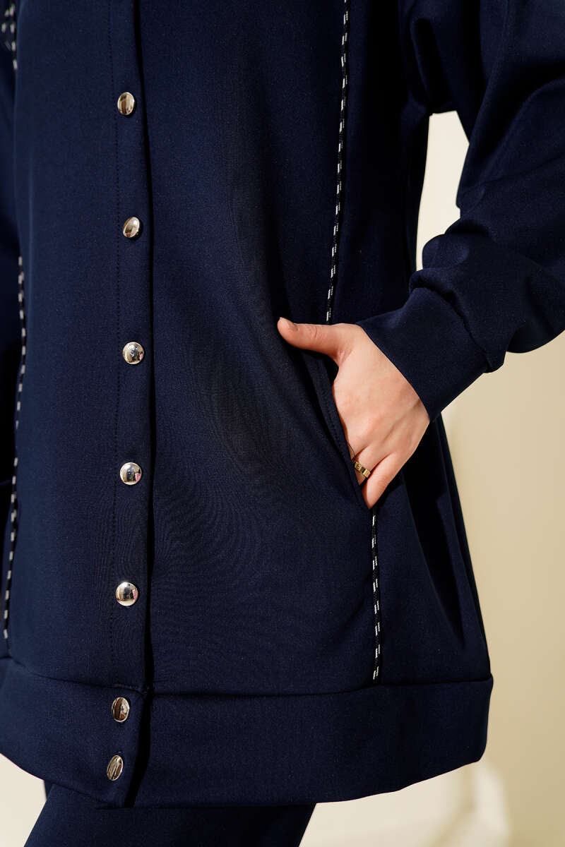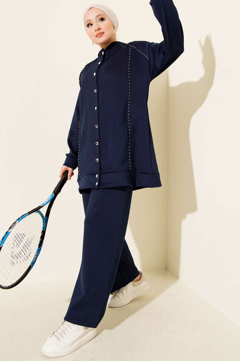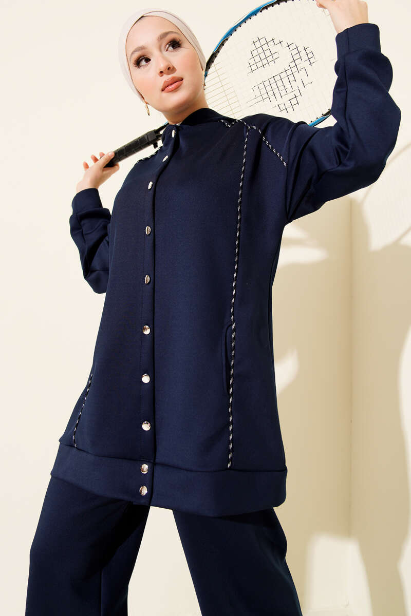 Metal Düğmeli Fermuarlı Scuba İkili Takım Lacivert