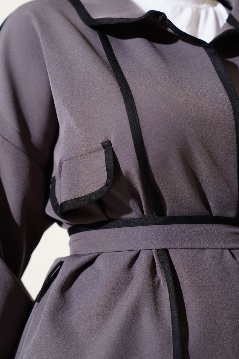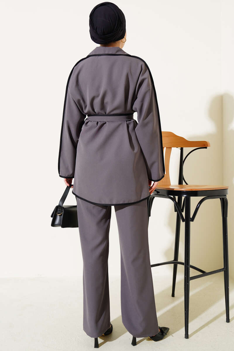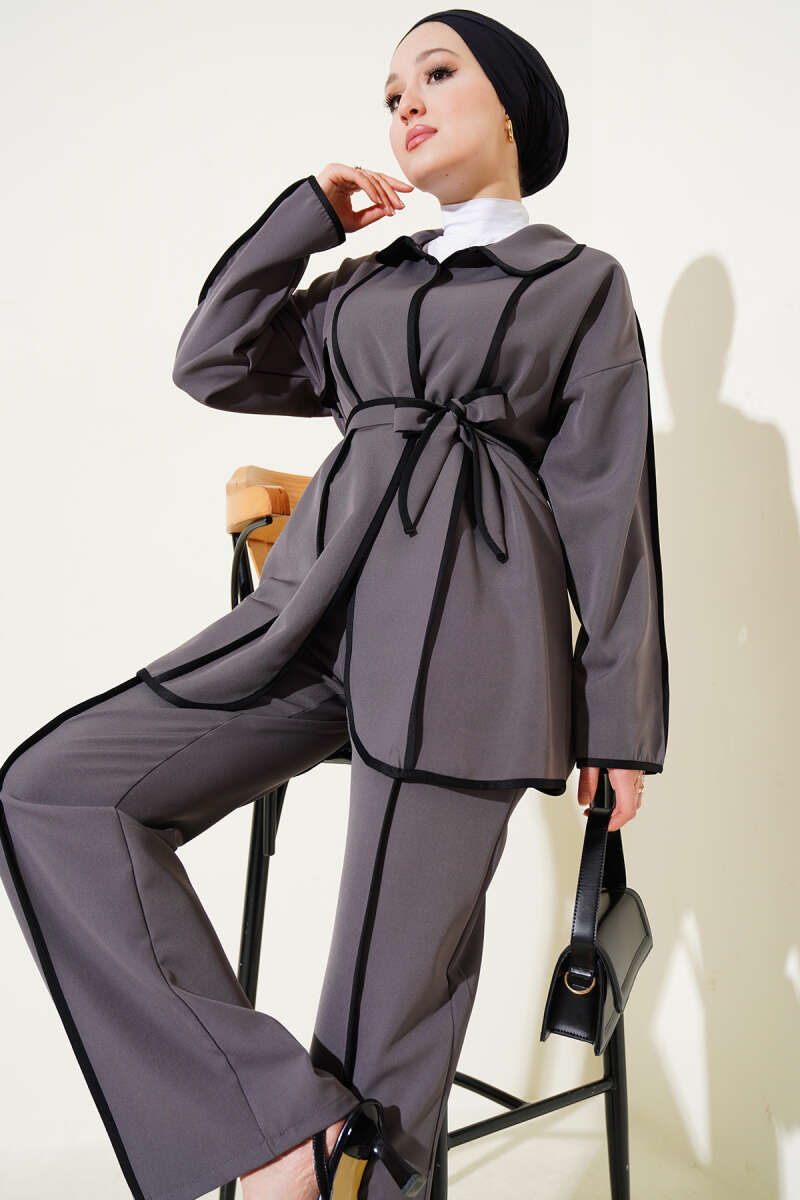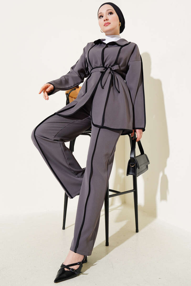 Yan Bağlamalı Kadife Fitilli İkili Takım Füme