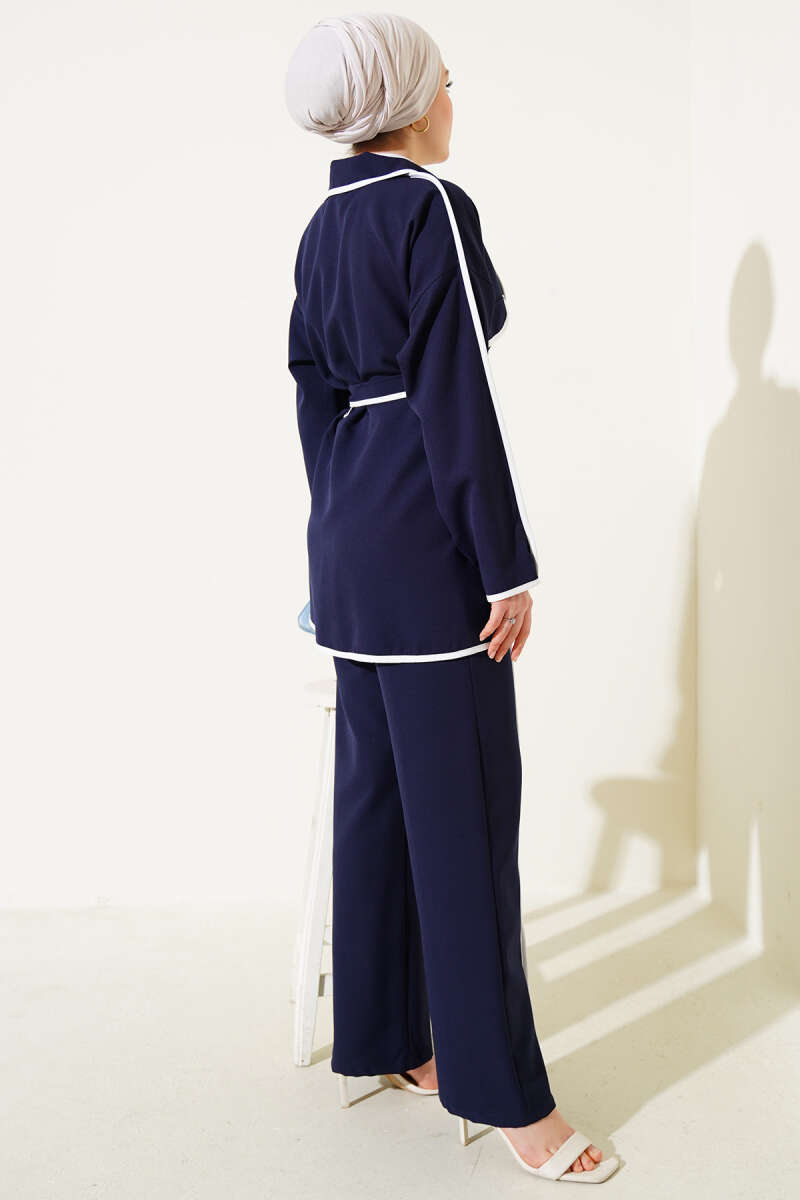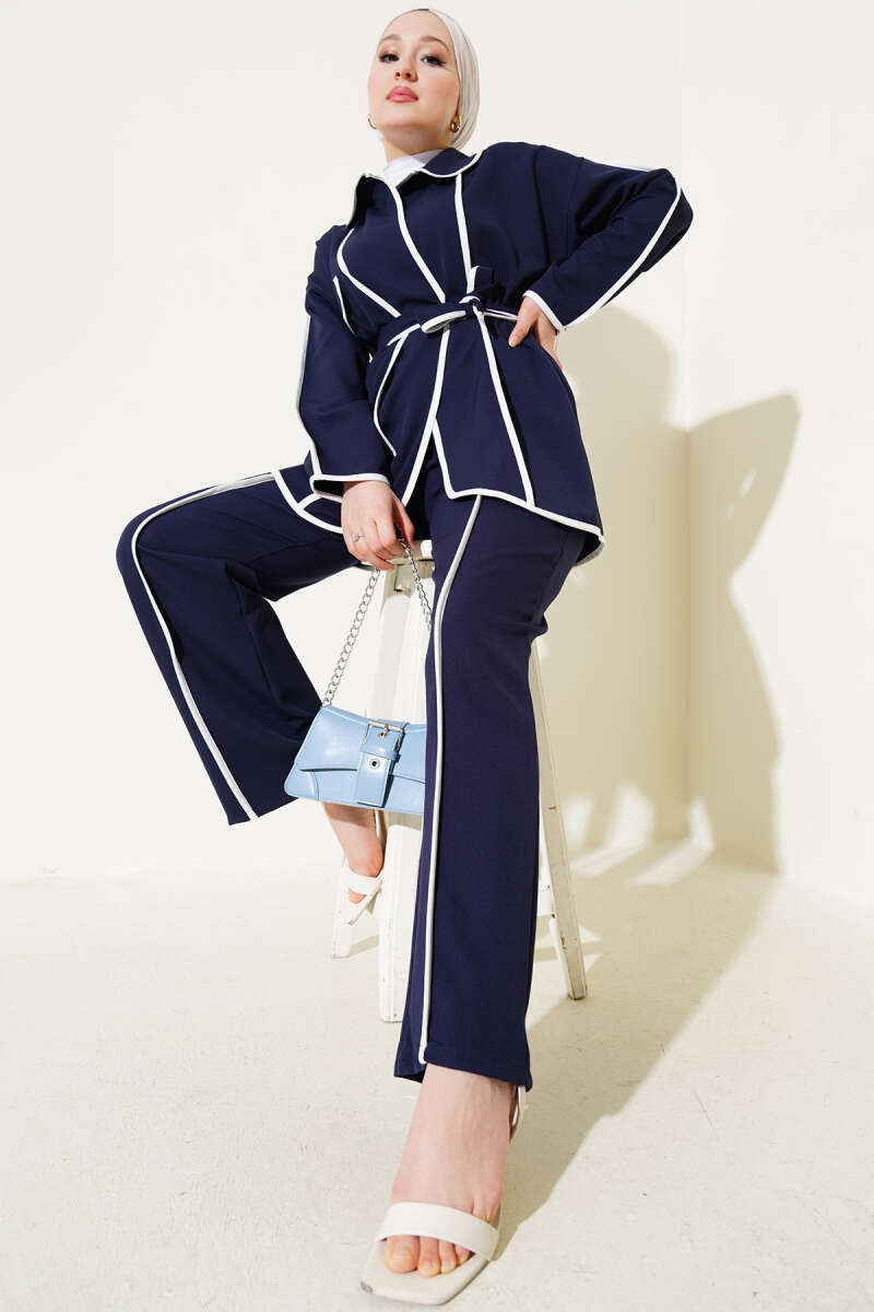 Yan Bağlamalı Kadife Fitilli İkili Takım Lacivert