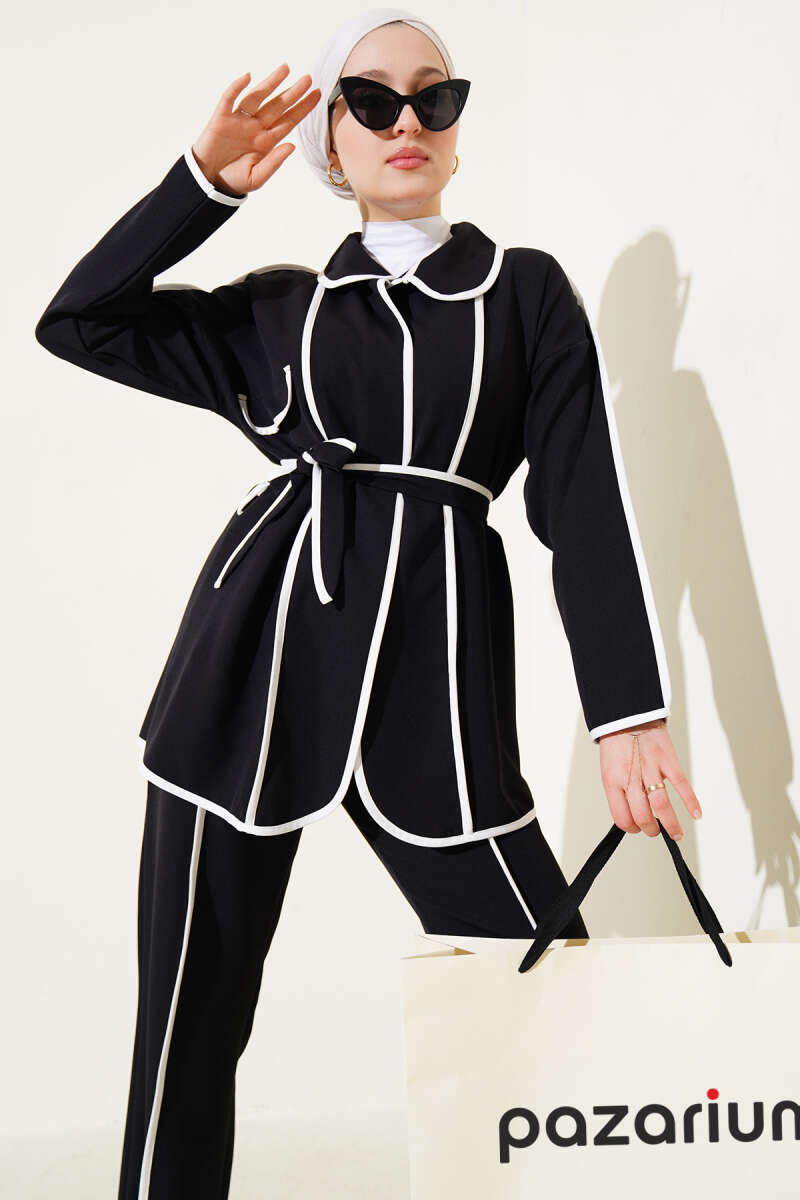 Yanı Bağlamalı Ceketli İkili Takım Lacivert