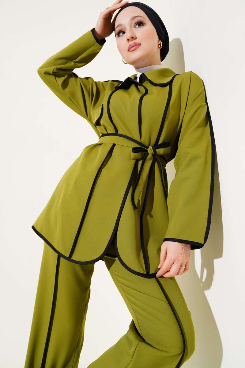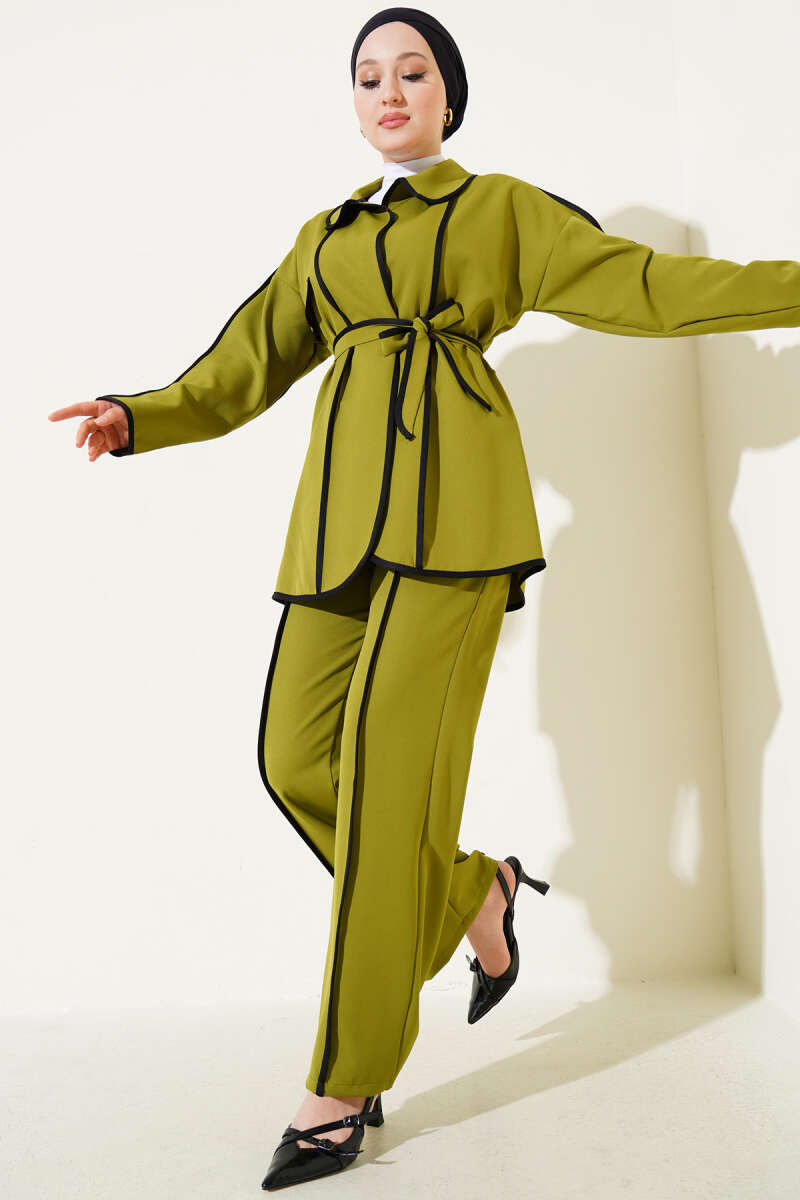 Yan Bağlamalı Kadife Fitilli İkili Takım Petrol Yeşili