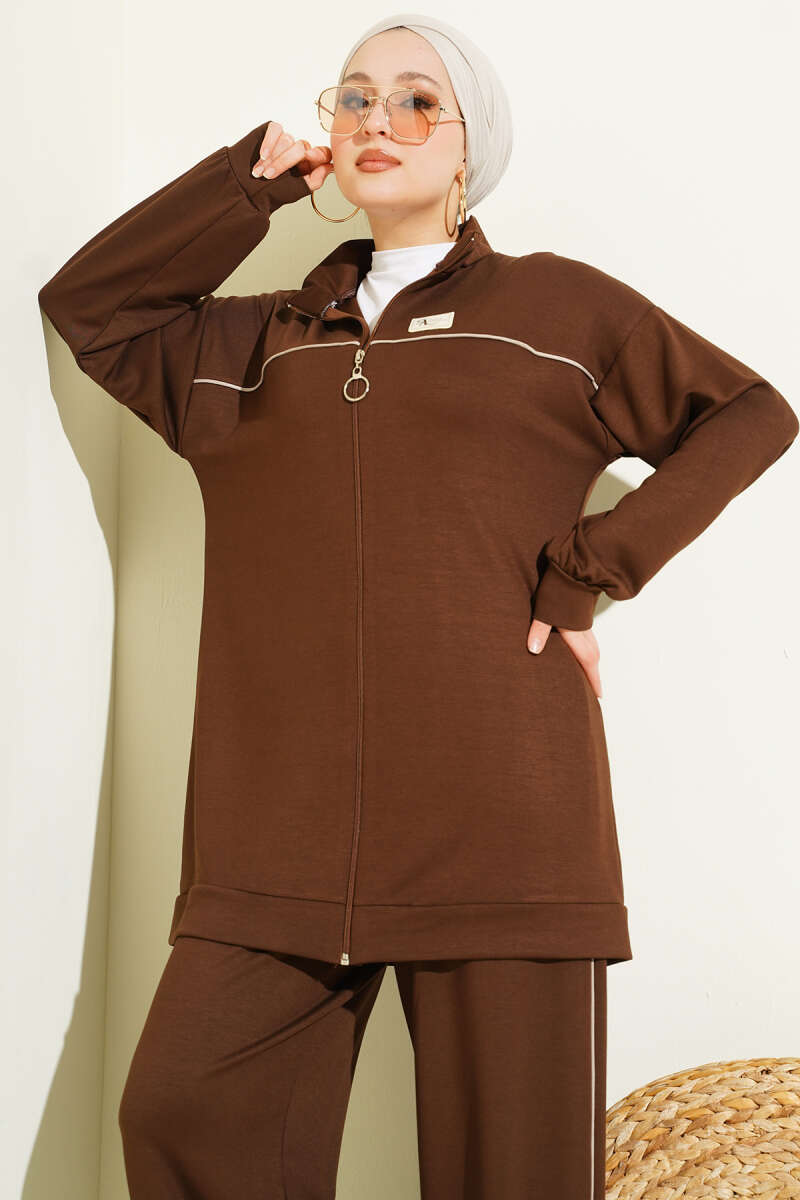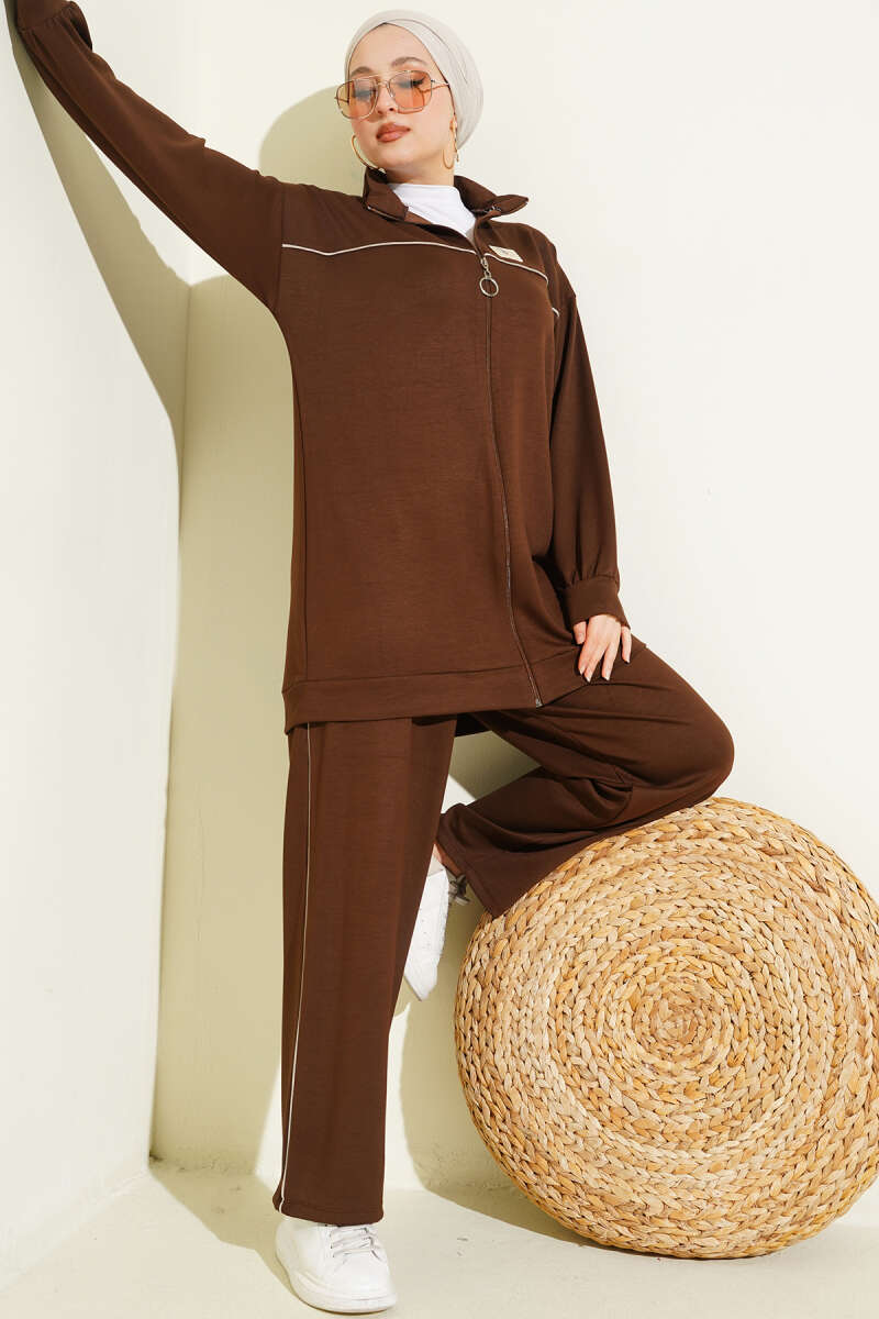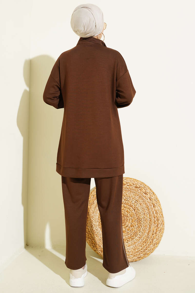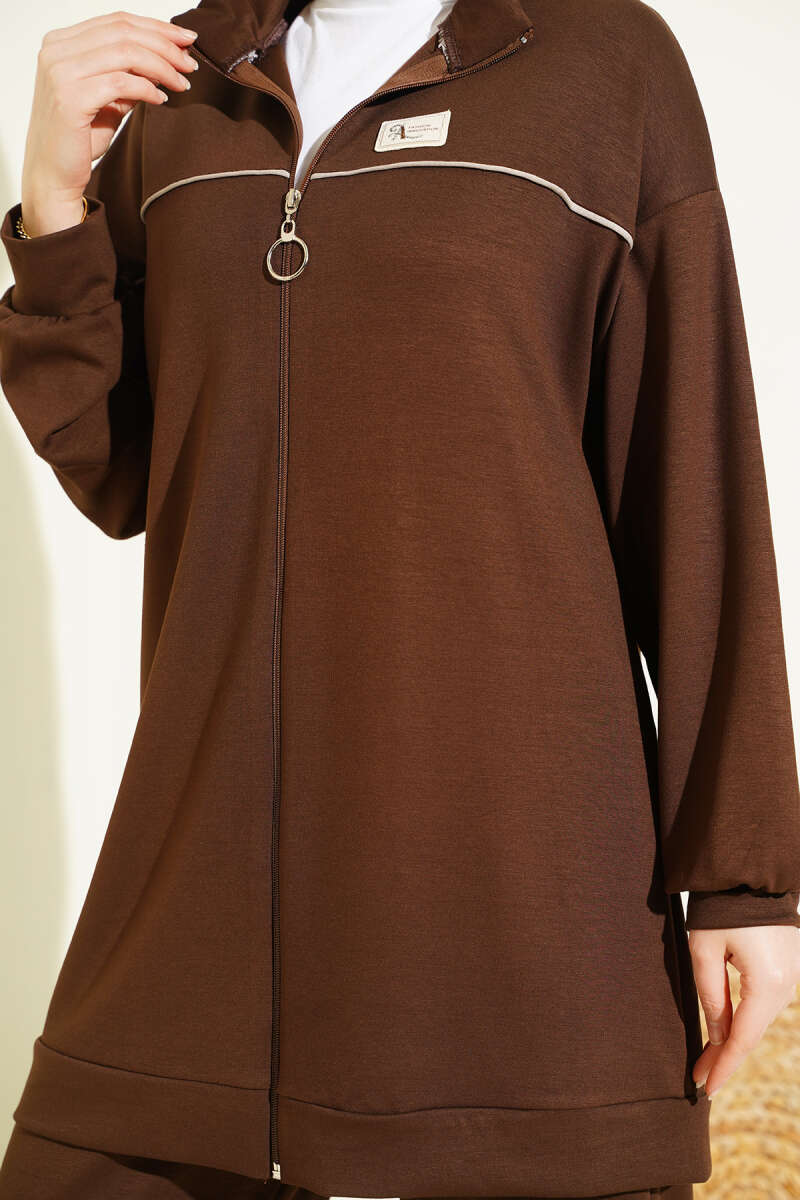 Çıtçıtlı Kapüşonlu Scuba Yelek Takım Kahve