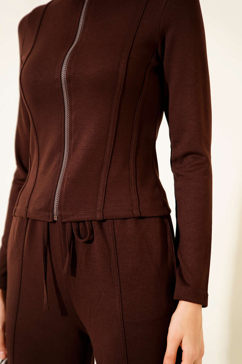 Biyeli Fermuarlı Loyşa İkili Takım Ekru