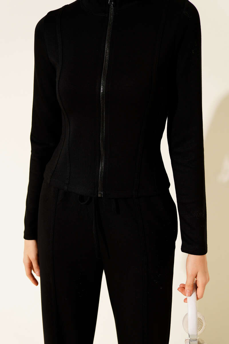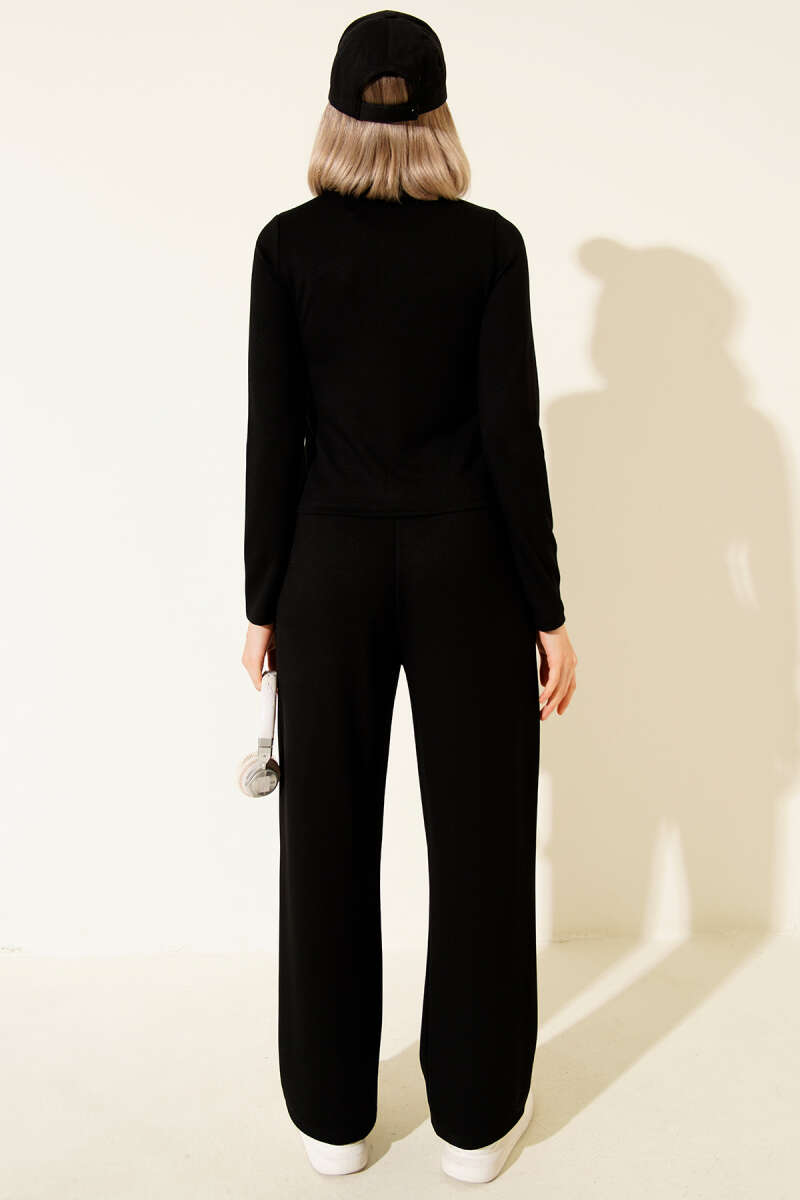 Yarım Boğazlı Fitilli Triko İkili Takım Siyah