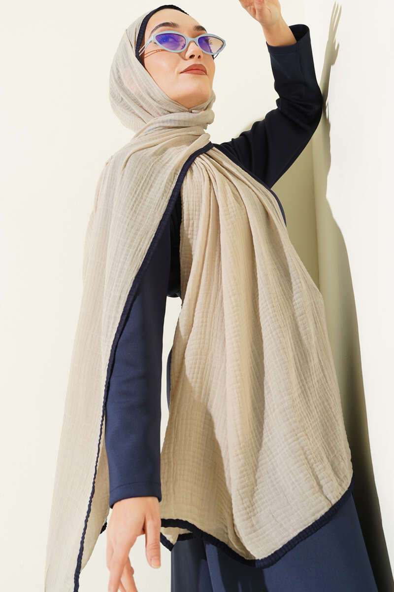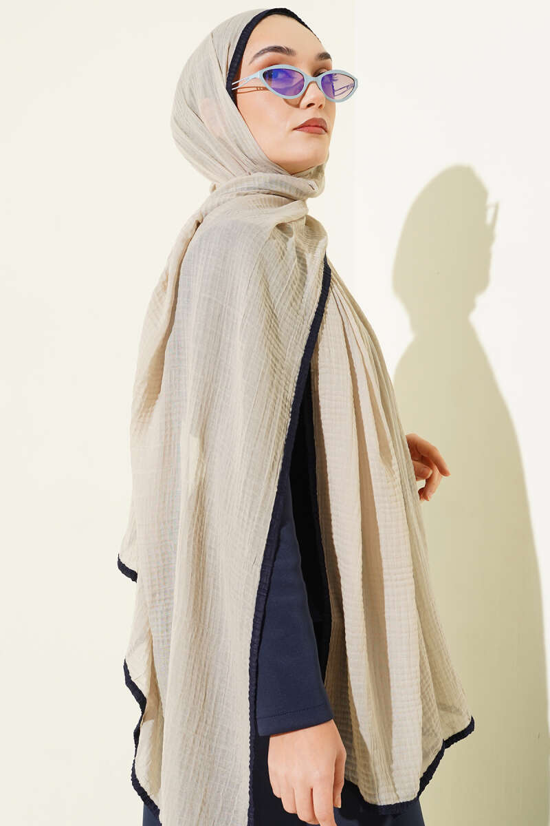 Ebruli Desenli Bambu Kraş Şal Acı Kahve