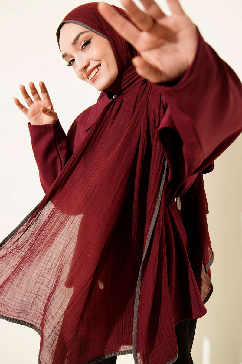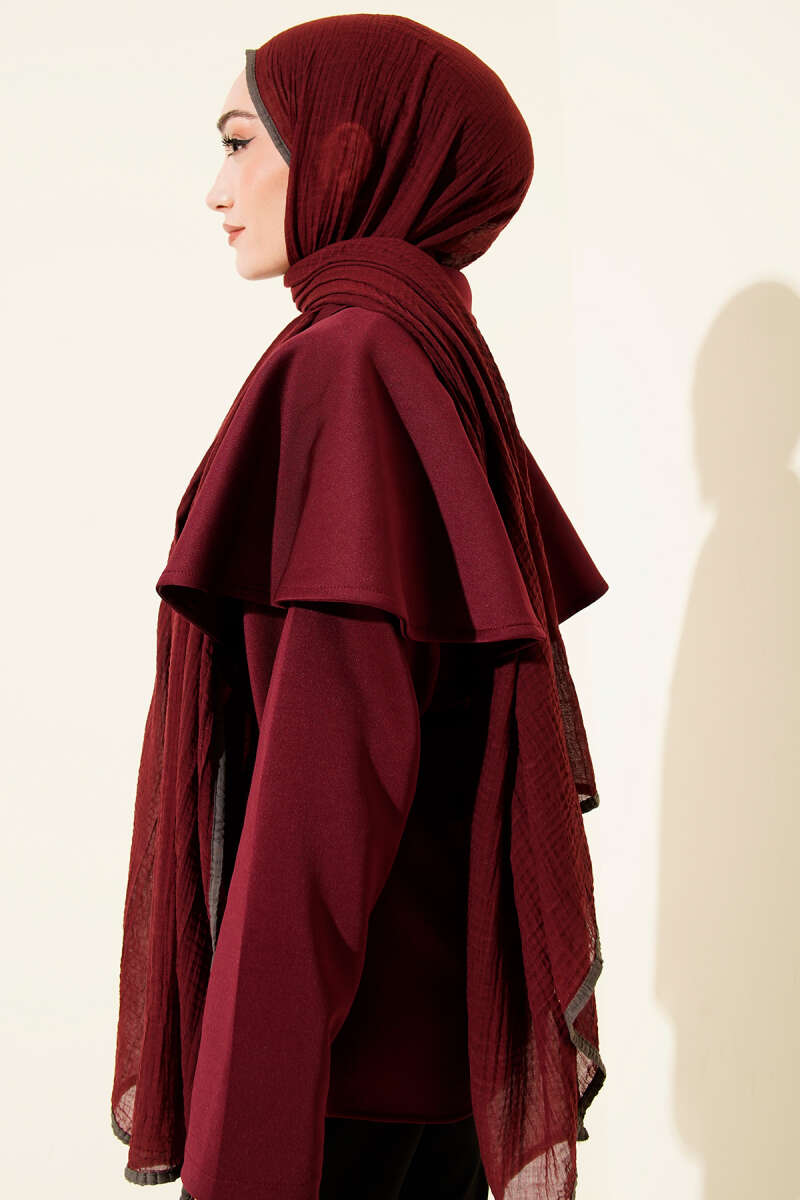 Ebruli Desenli Bambu Kraş Şal Bordo
