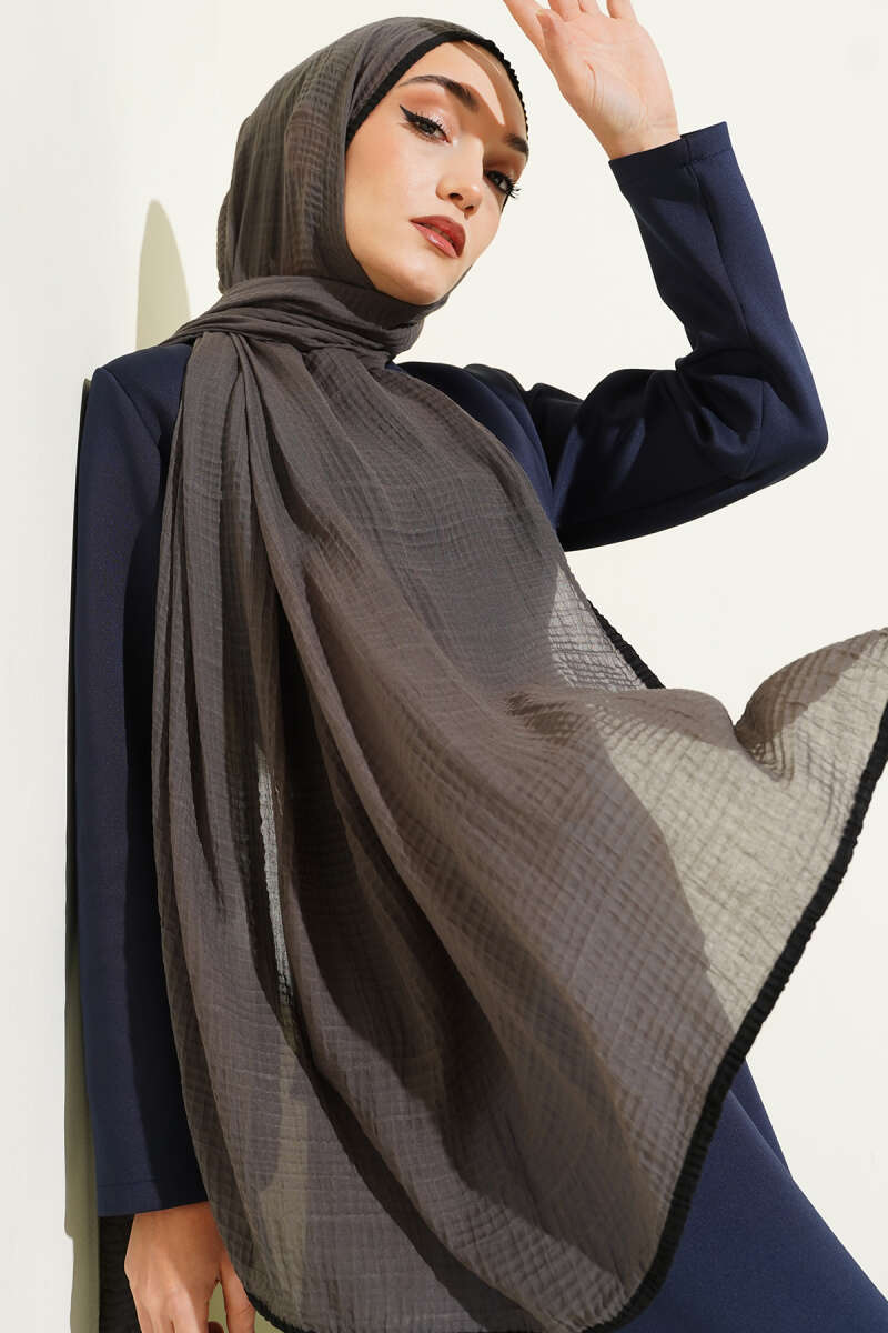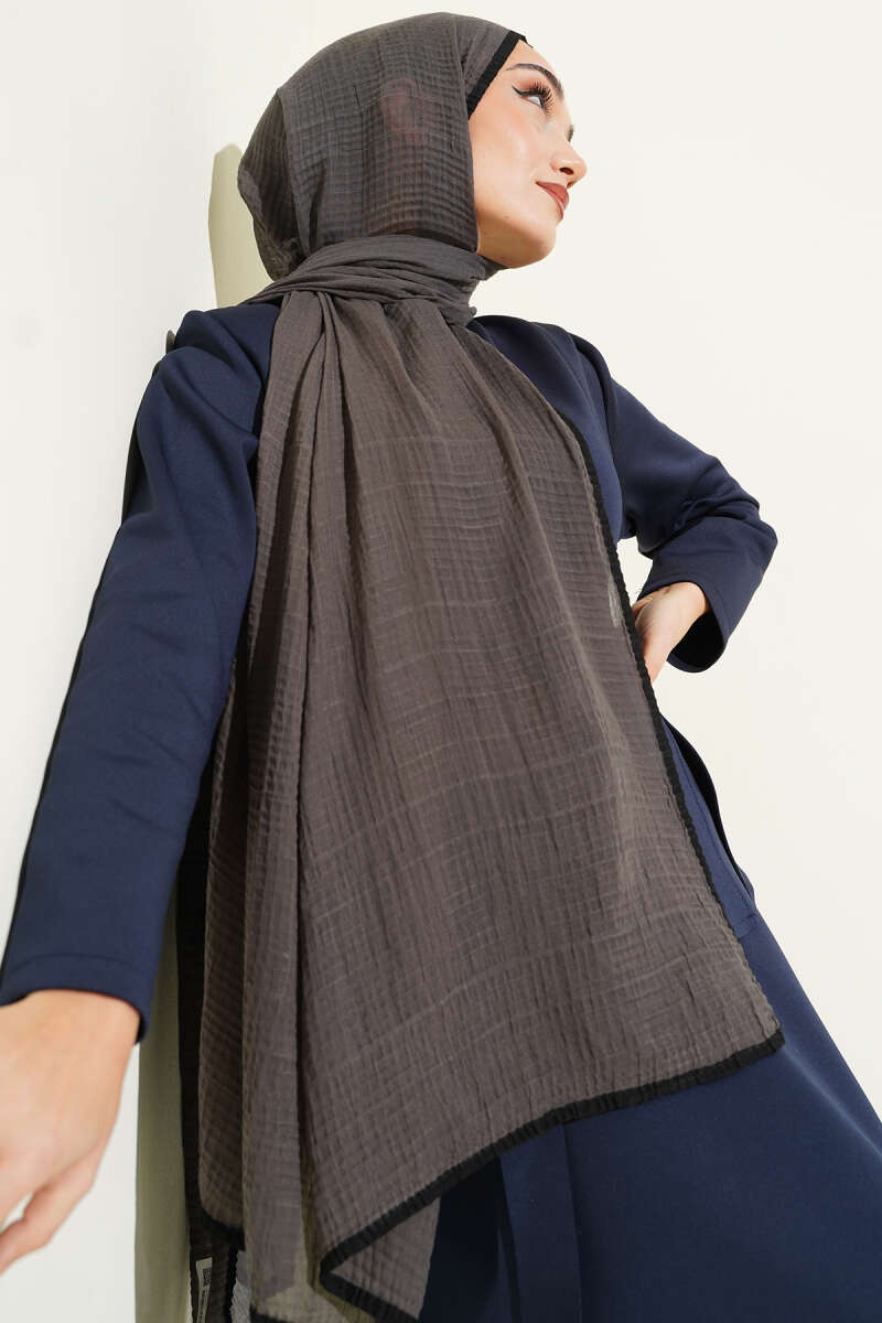Ebruli Desenli Bambu Kraş Şal Acı Kahve