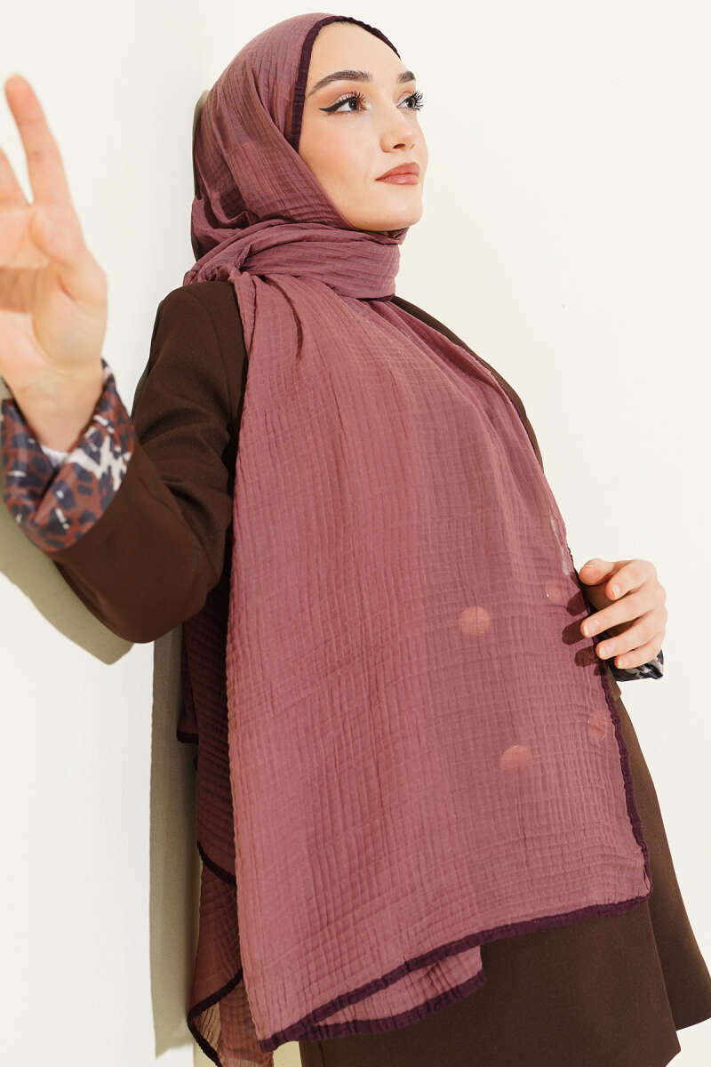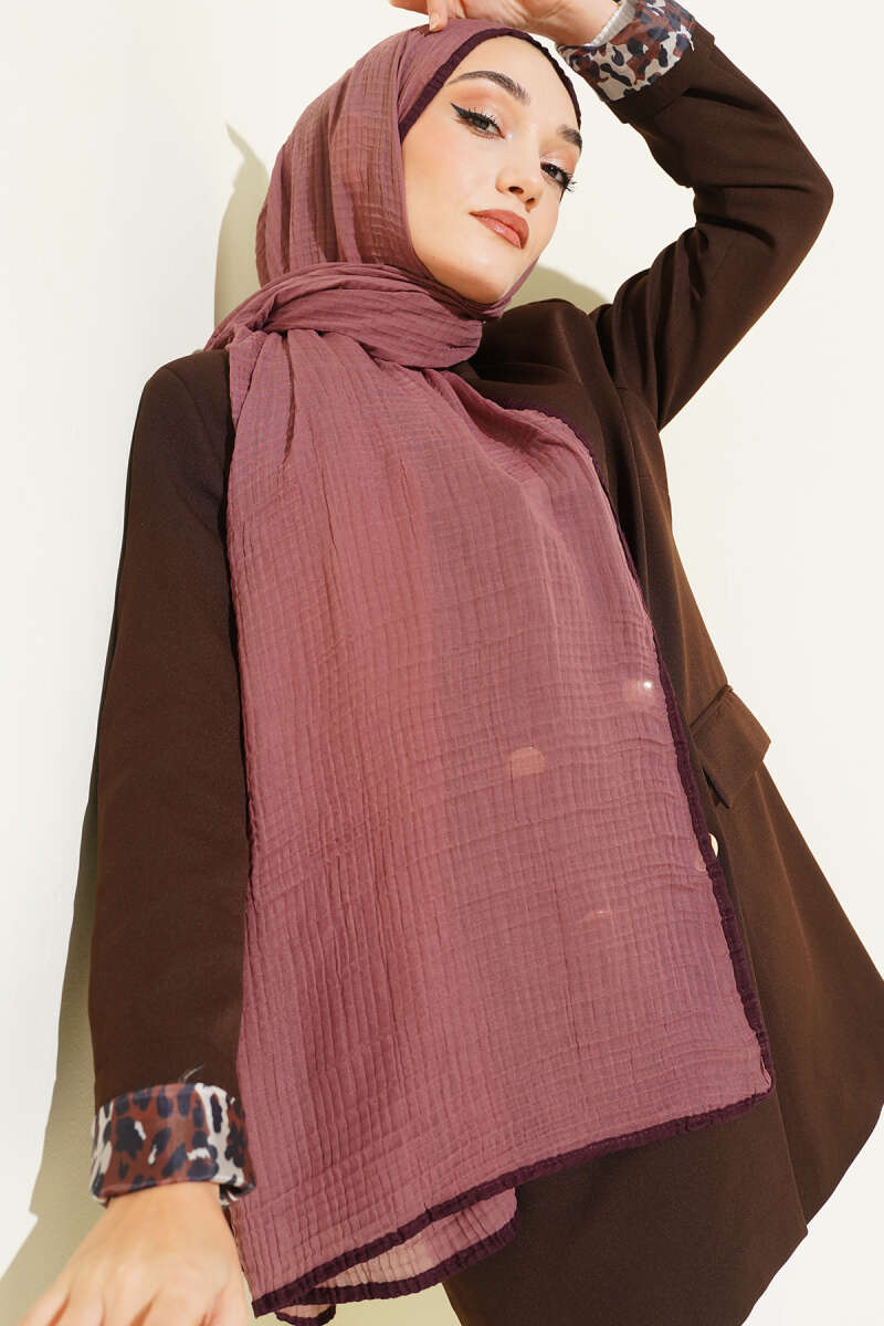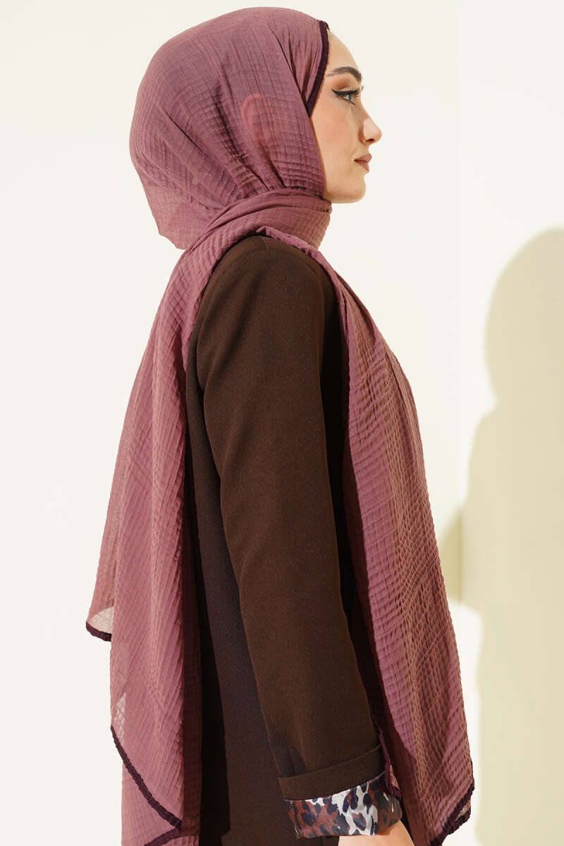 Ebruli Desenli Bambu Kraş Şal Mürdüm