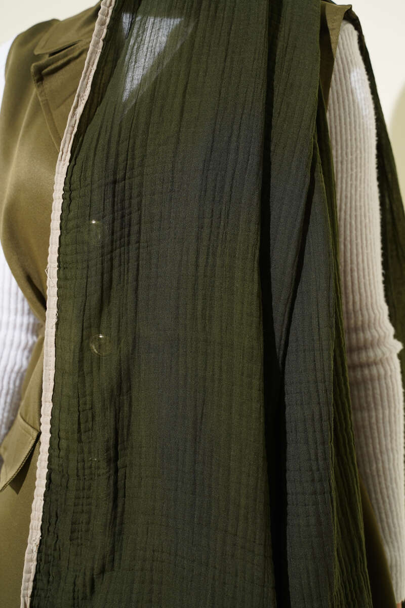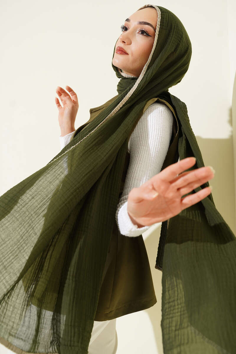 Çiçek Desenli Bambu Kraş Şal Yağ Yeşili