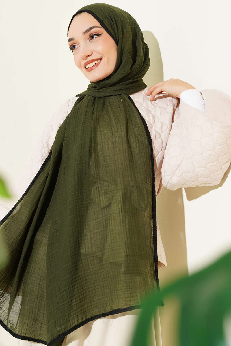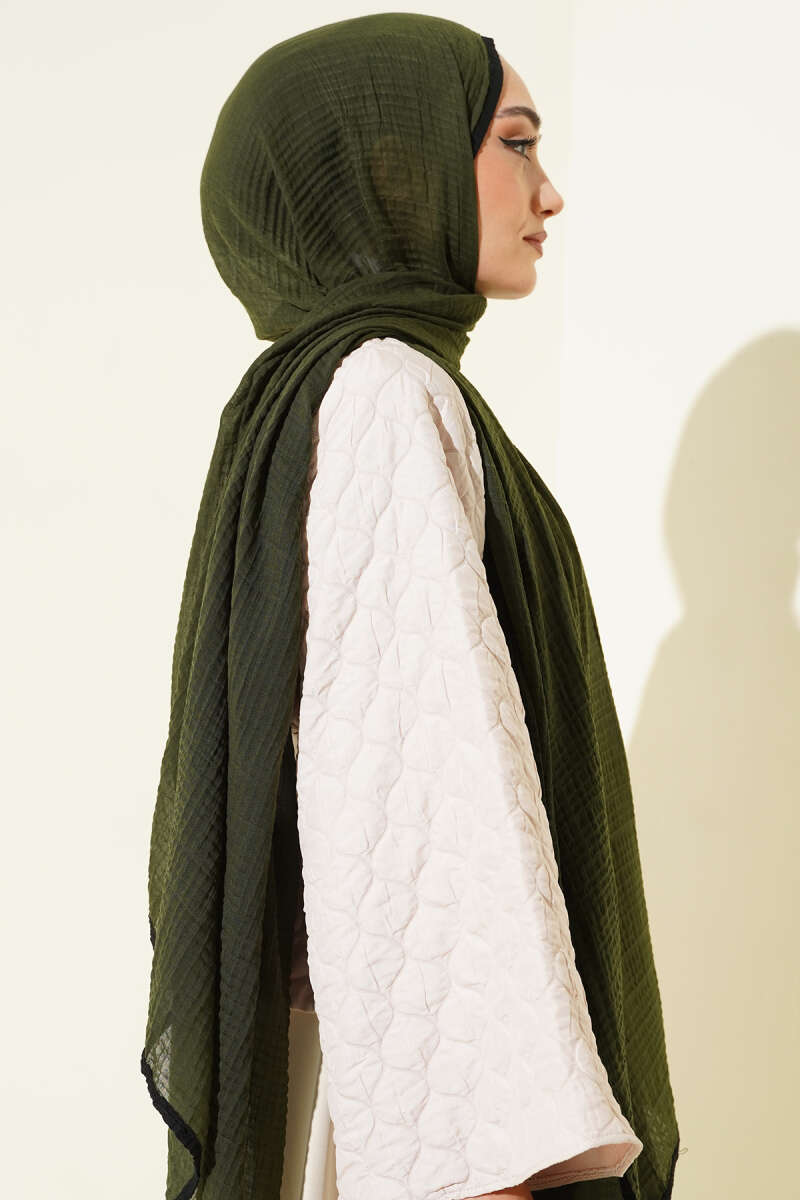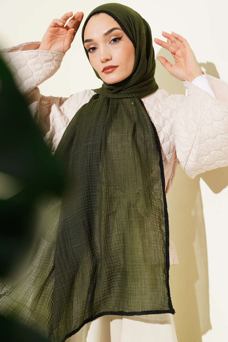 Biyeli Müslin Şal Kamuflaj Yeşili