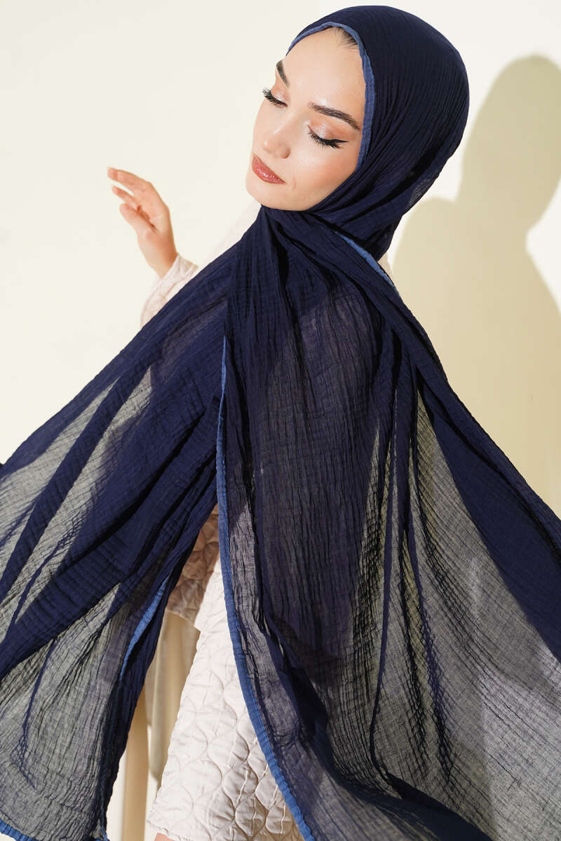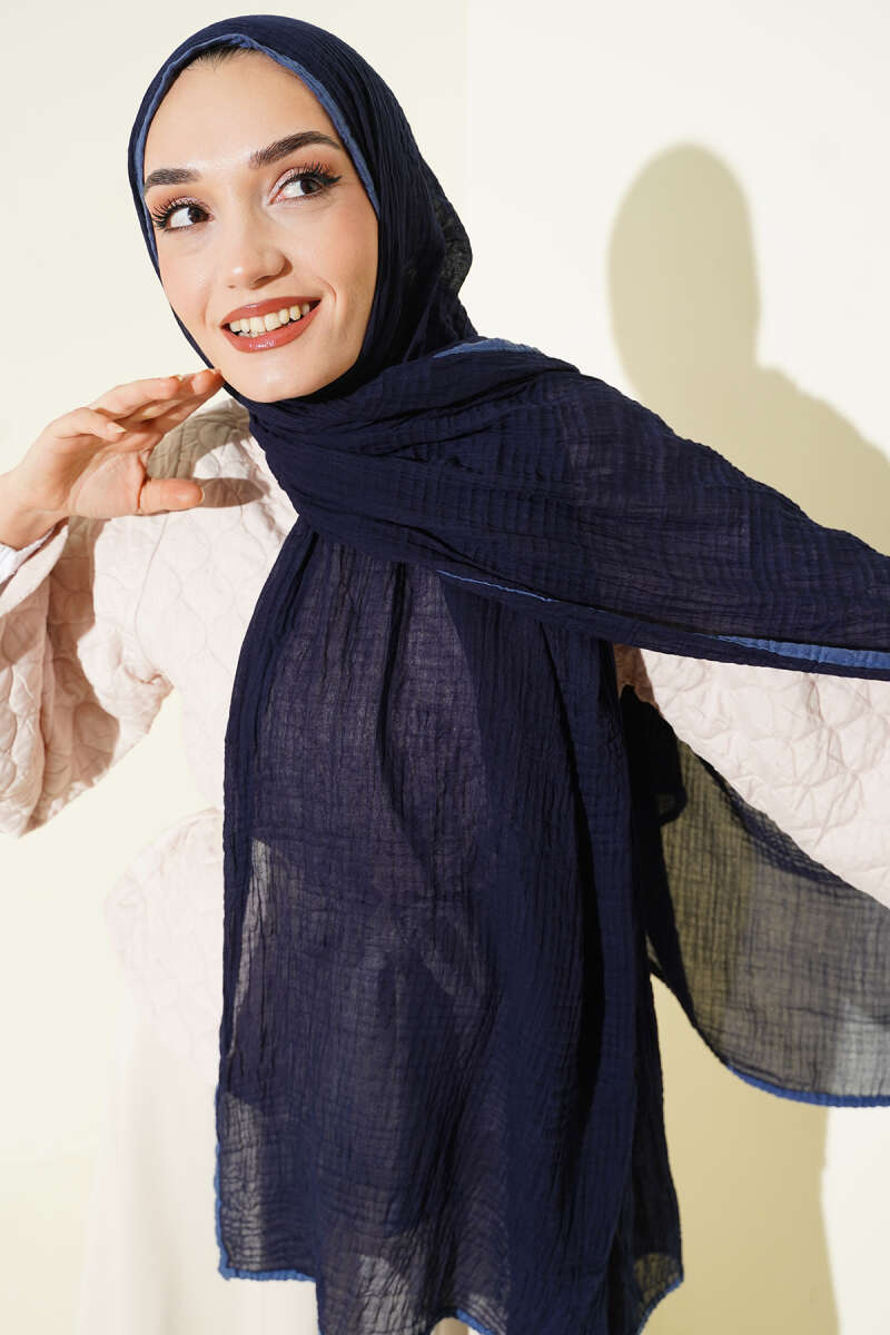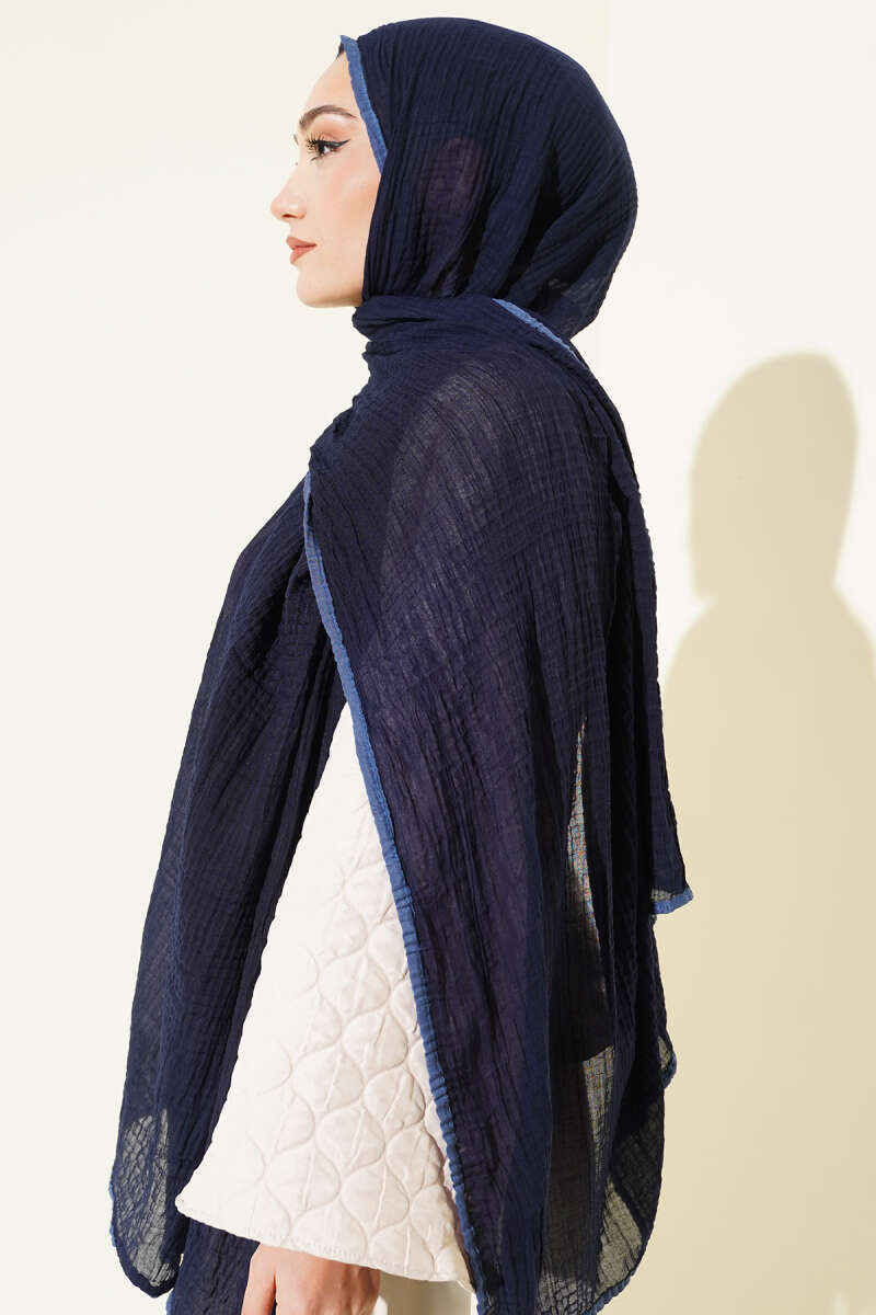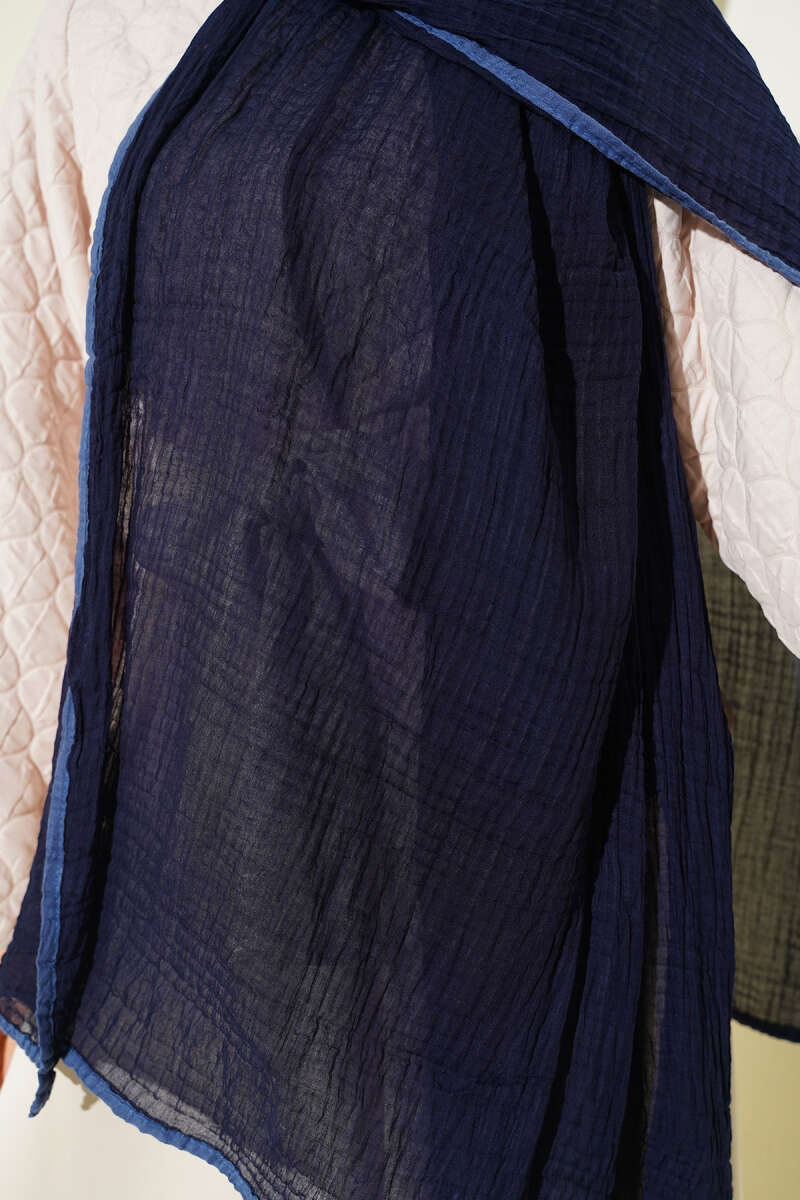 Biyeli Müslin Şal Lacivert