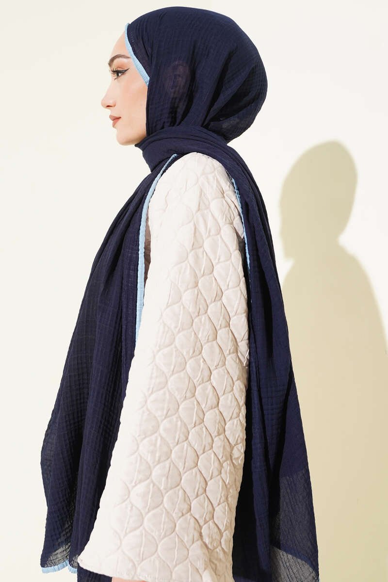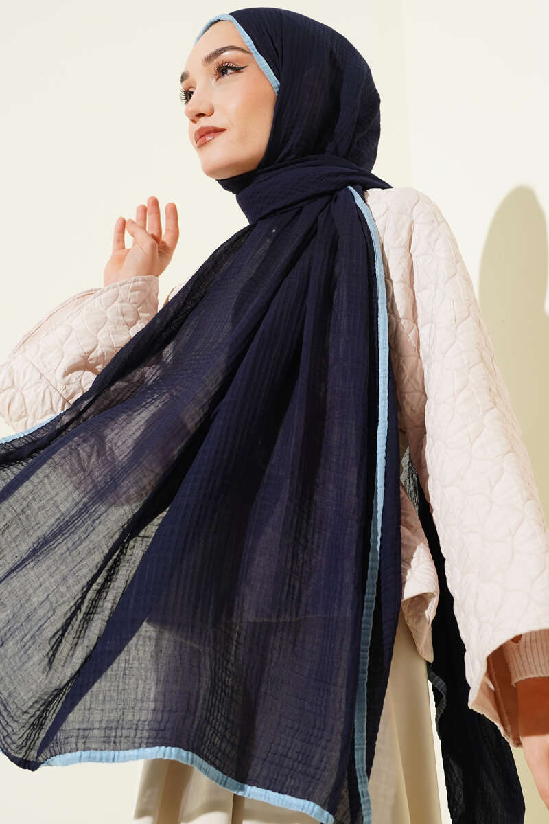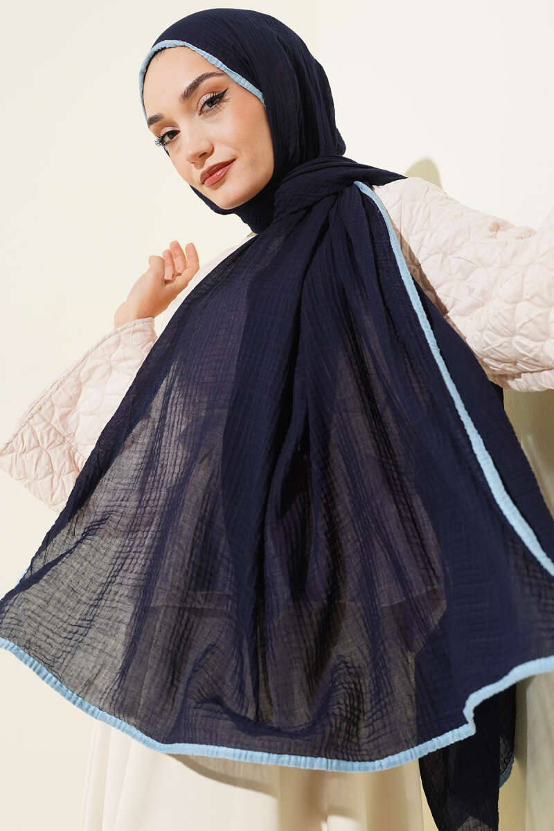 Çiçek Desenli Bambu Kraş Şal Soft Mavi
