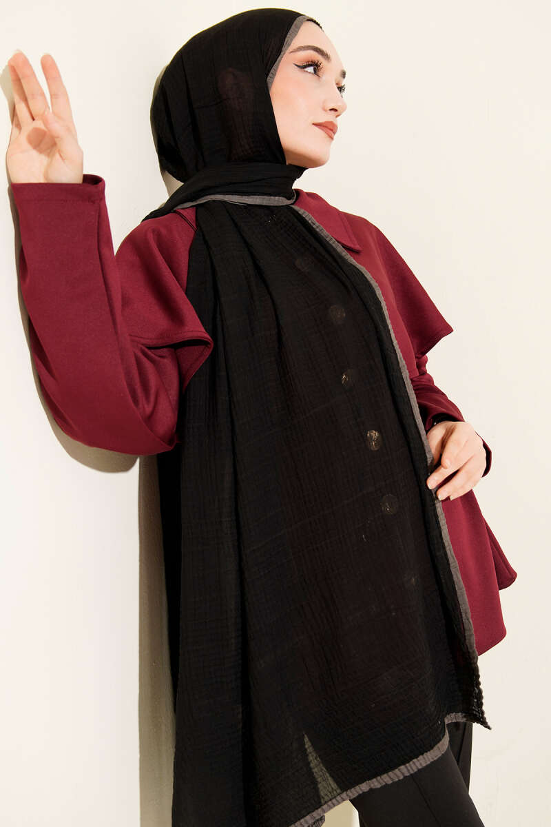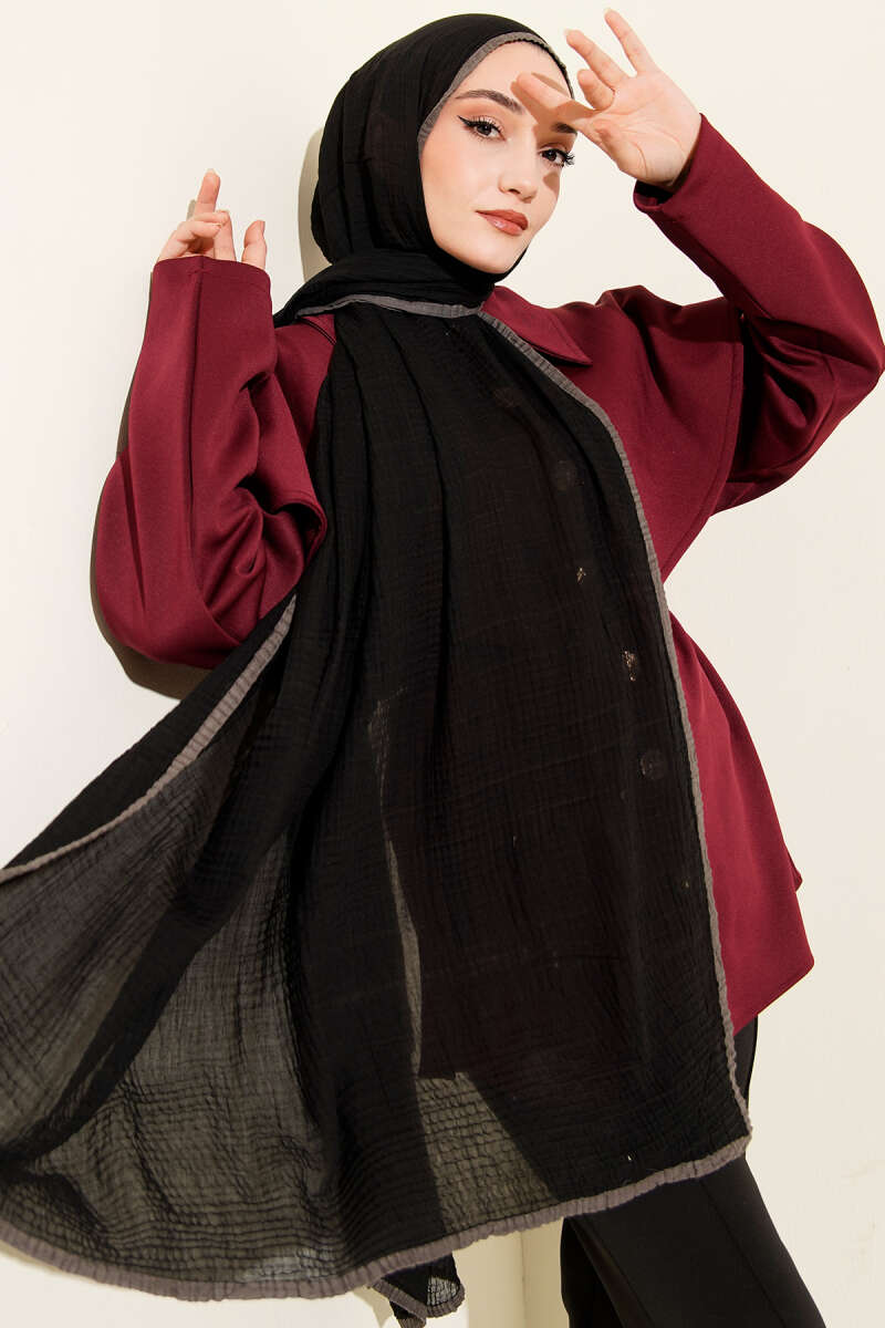 Ebruli Desenli Bambu Kraş Şal Bordo