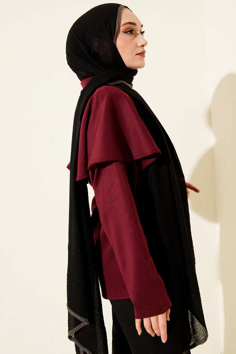 Omuz Vatkalı Degaje Yaka Sandy Bluz Bordo