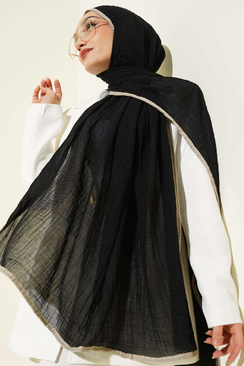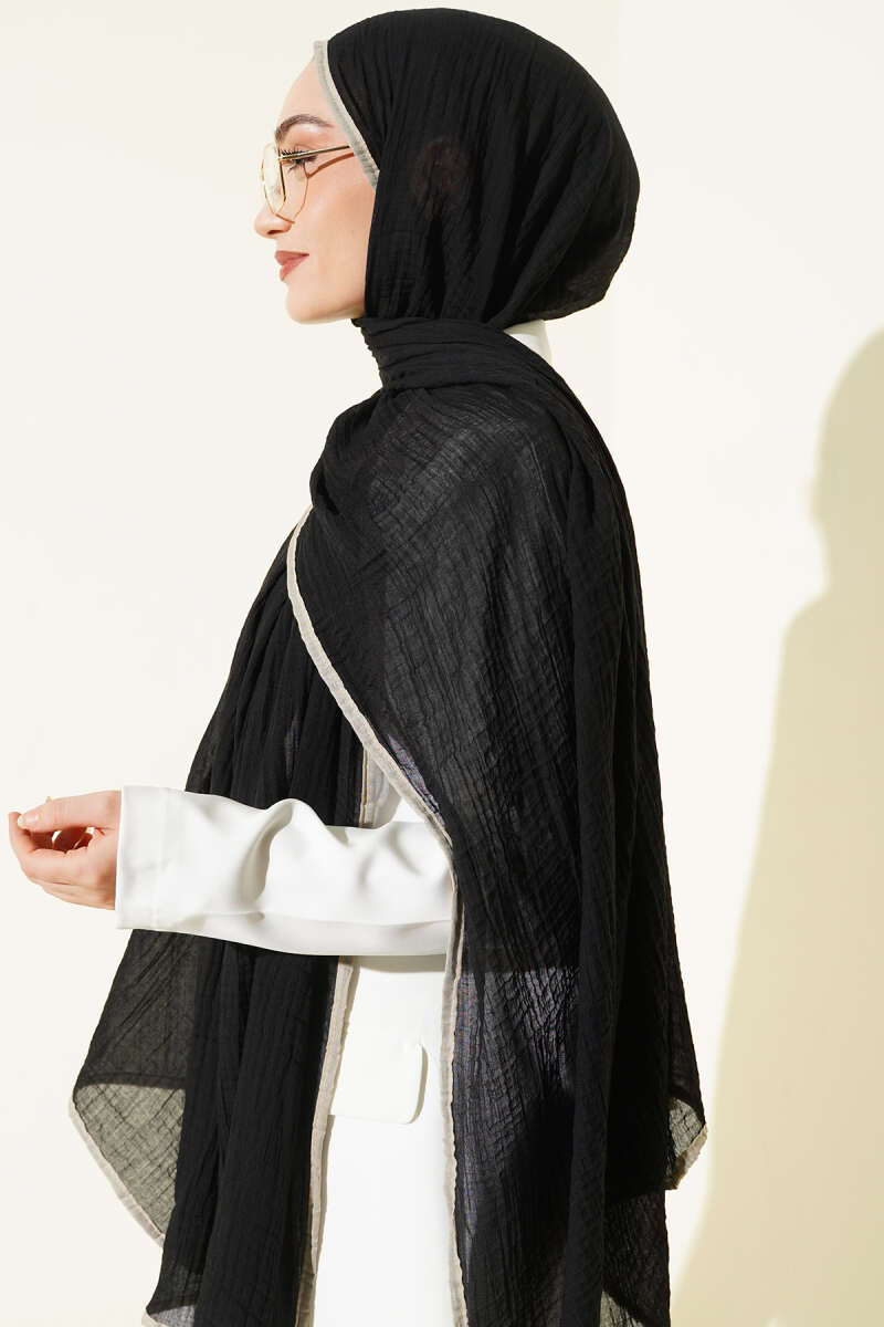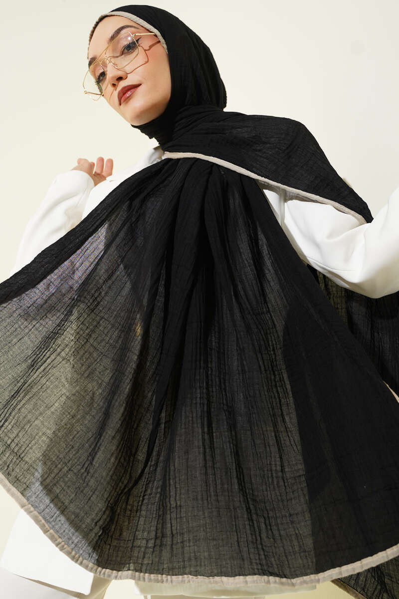 Geometri Desen Flamu Cotton Eşarp Siyah Taba